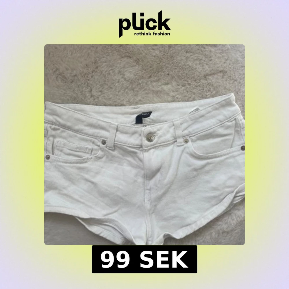 Snygga vita jeansshorts från Divided med klassisk femficksdesign och låg midja. De är tillverkade i bomull och har bälteshällor, knapp och dragkedja framtill. Perfekta för varma sommardagar och enkla att matcha med allt.