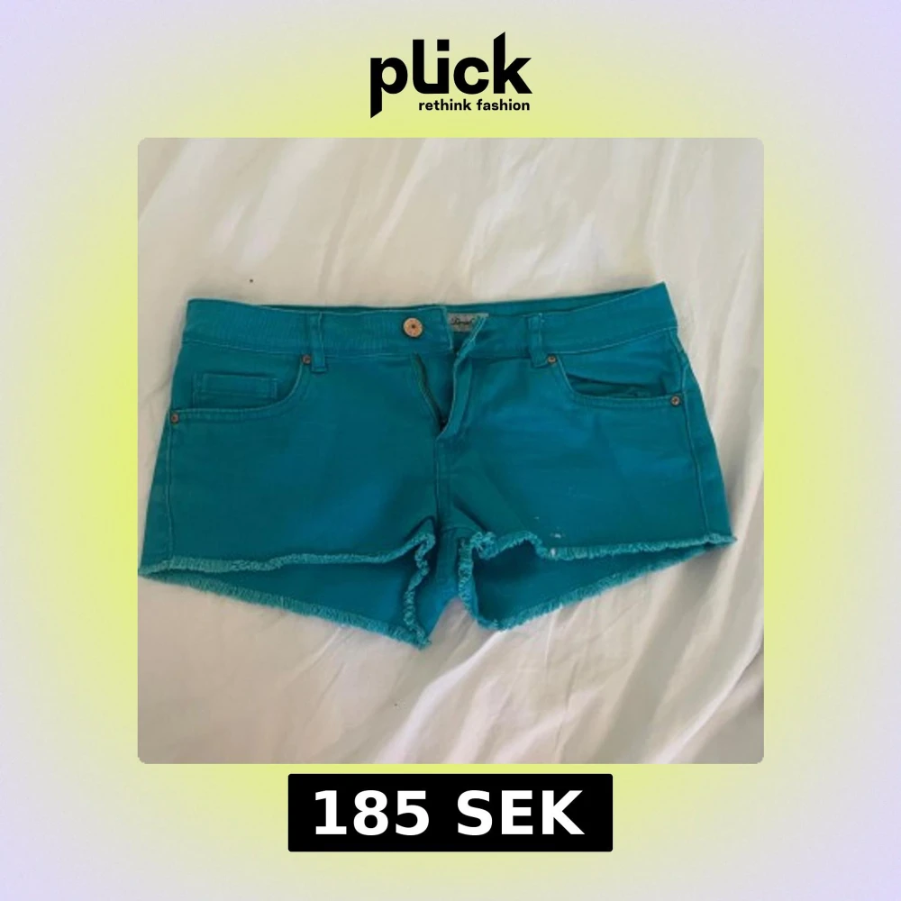 Snygga turkosa jeansshorts från Denim Co. i storlek 36. Modellen är lågmidjad med råa, fransiga kanter och klassiska fem fickor. Perfekta för sommaren och ger en cool vibe till din outfit.