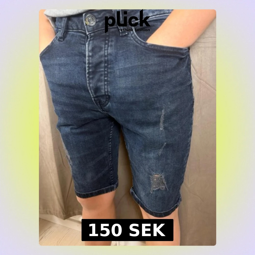 Mörkblå jeansshorts med slitningar
