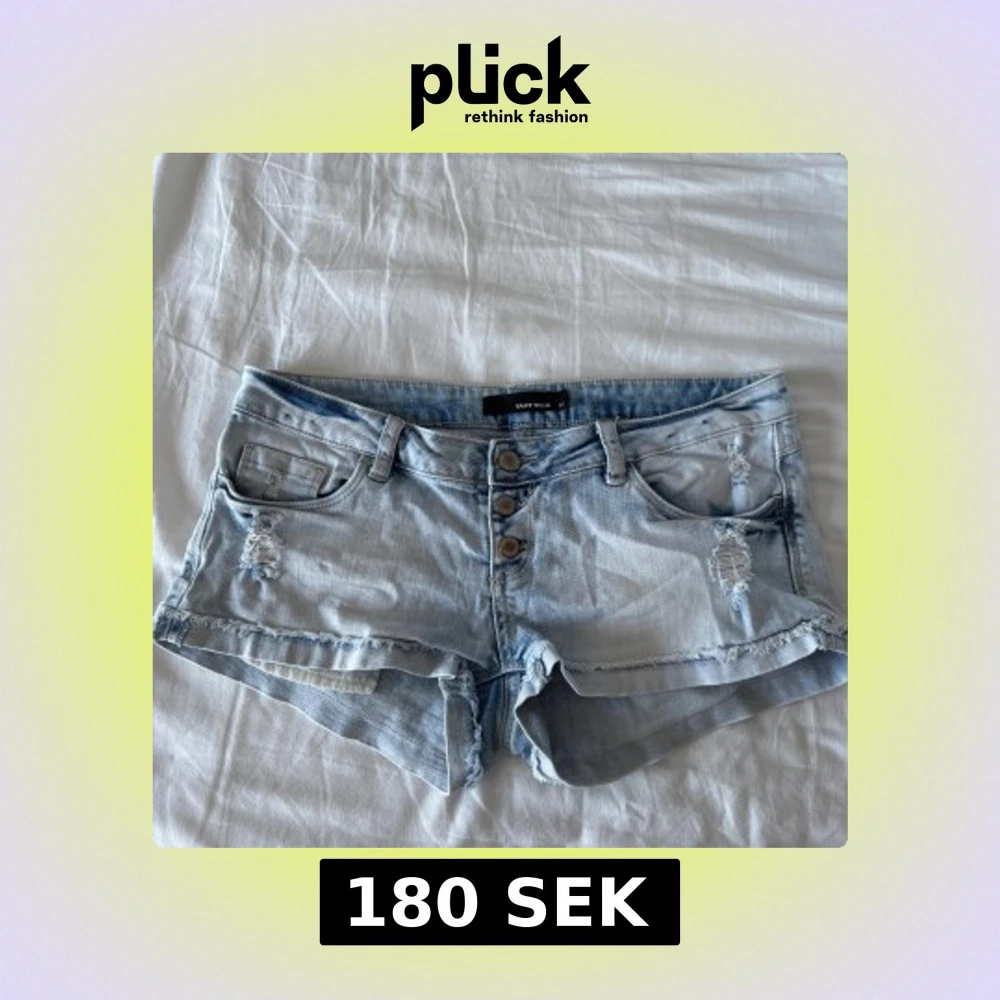 Säljer ett par ljusblå jeansshorts från tally weijl med slitna detaljer, fransig kant och tre synliga knappar framtill. Shortsen har klassiska fickor både fram och bak och är perfekta för varma dagar. Liten ljusrosa fläck på ena bakfickan men inget man tänker på❤️