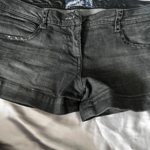 Snygga svarta jeansshorts med paljettdetaljer pĂ„ fram- och bakfickorna. đ„°