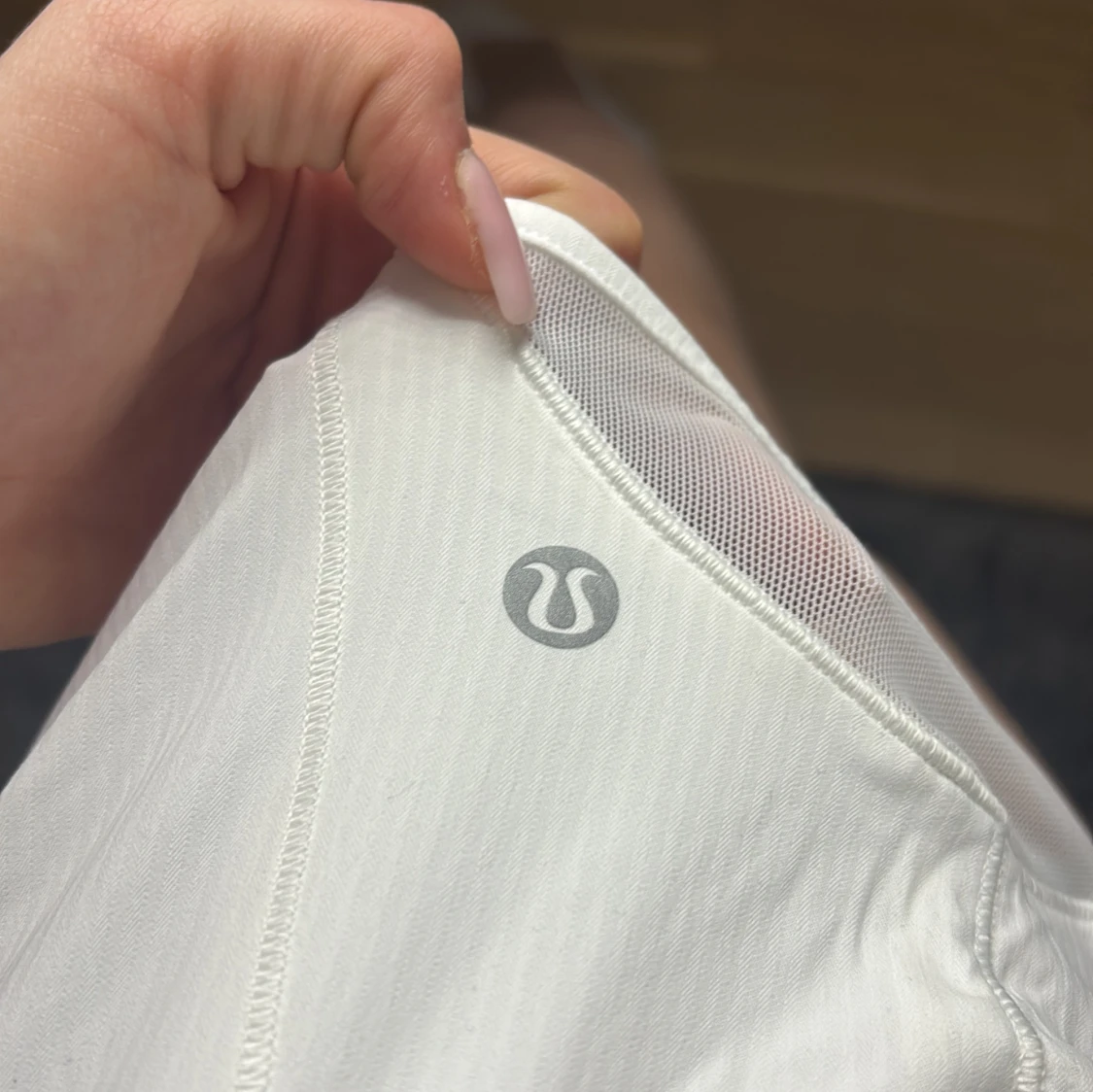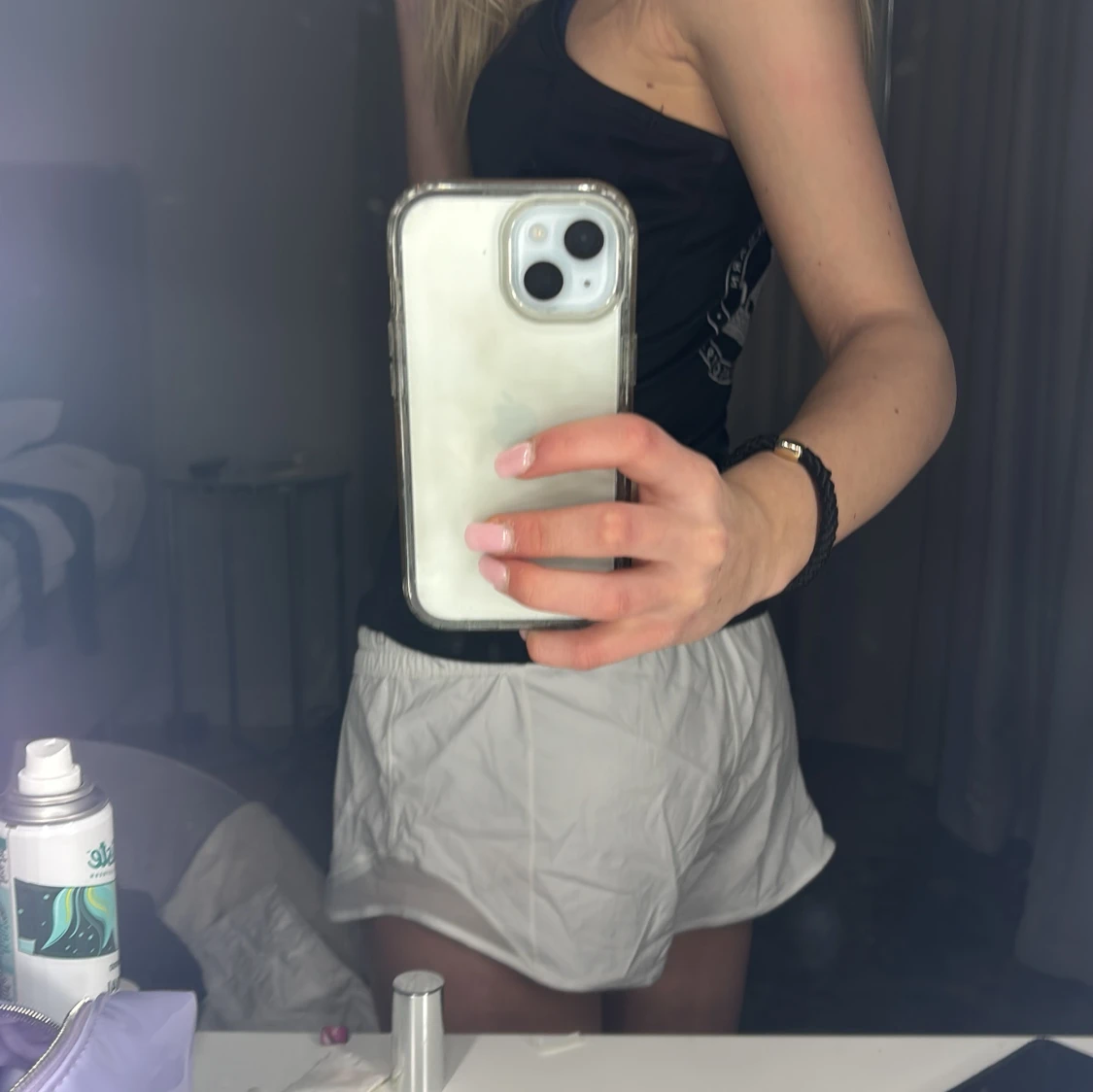 Säljer ett par vita shorts från Lululemon. De är perfekta för träning med en bekväm passform och elastisk midja. Shortsen har en stilren design och är tillverkade i ett lätt och andningsbart material.