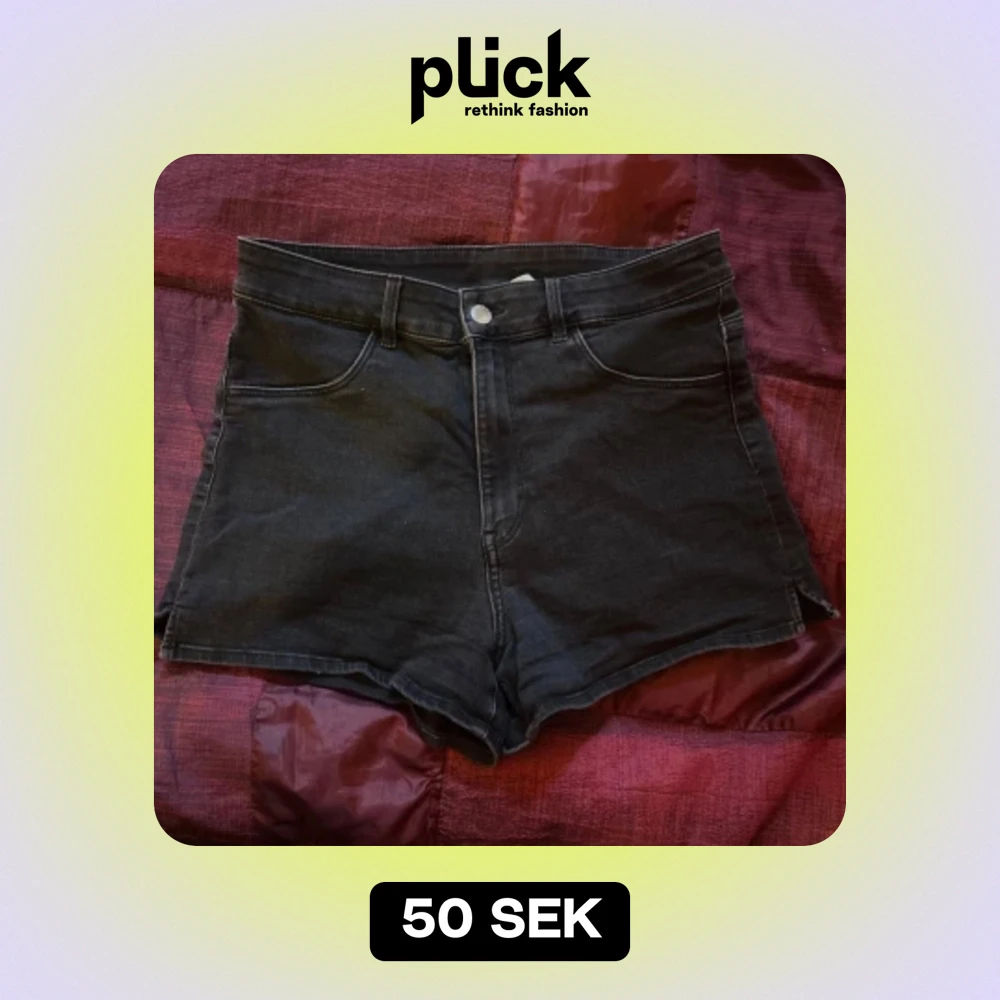 Säljer ett par snygga svarta högmidjade jeansshorts. De har en klassisk femficksdesign och en liten slits på sidorna som ger en extra touch. Perfekta för sommardagar eller en avslappnad utekväll. Passar till allt och är superbekväma!
