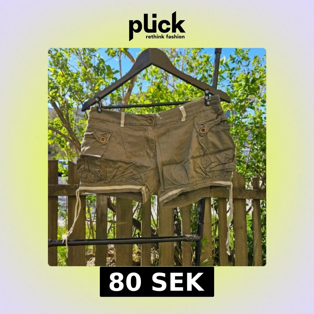 Snygga olivgröna cargoshorts med stora fickor, dekorativa knappar och snörning i benen. Shortsen har normal passform och midwaist. Perfekta för sommardagar och avslappnad stil.