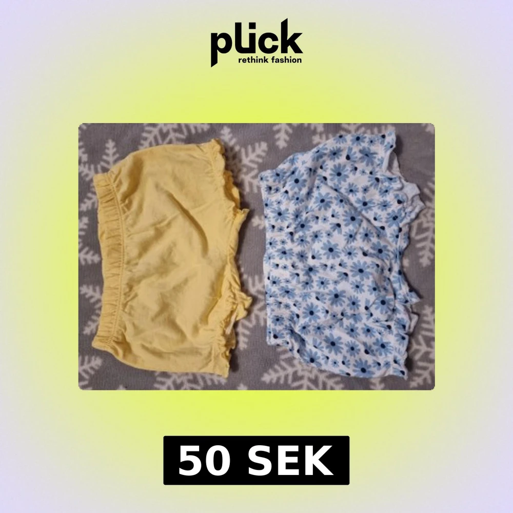 Säljer två gulliga shorts från Lupilu i storlek 62/68. Ena paret är ljusgula med volangkant och resår i midjan, andra är vita med blått blommönster och samma volangdetalj. Båda är i mjuk bomull, perfekta för varma dagar och chill stunder.