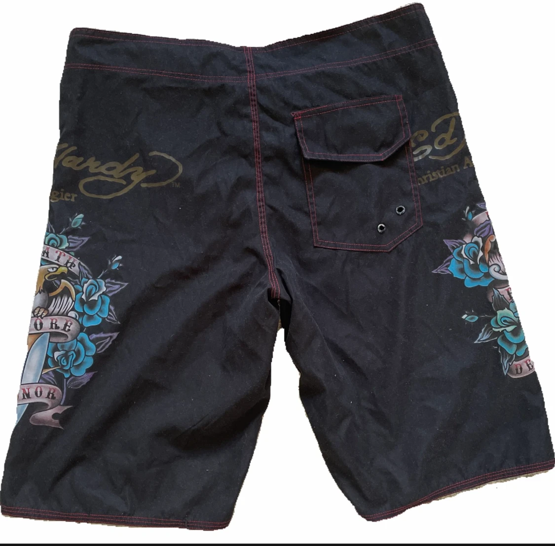 Feta badbyxor, äkta Ed Hardy köpte för 500 men aldrig använda ❤️snörning som underlättar att justera passformen, även en ficka där bak