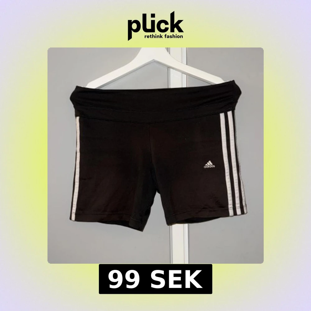 Svarta träningsshorts från Adidas med vita ränder längs sidorna och klassisk logga framtill. Modellen är tight och har bred midja för extra komfort. Materialet är mjukt och stretchigt polyester, perfekt för gymmet eller löprundan.