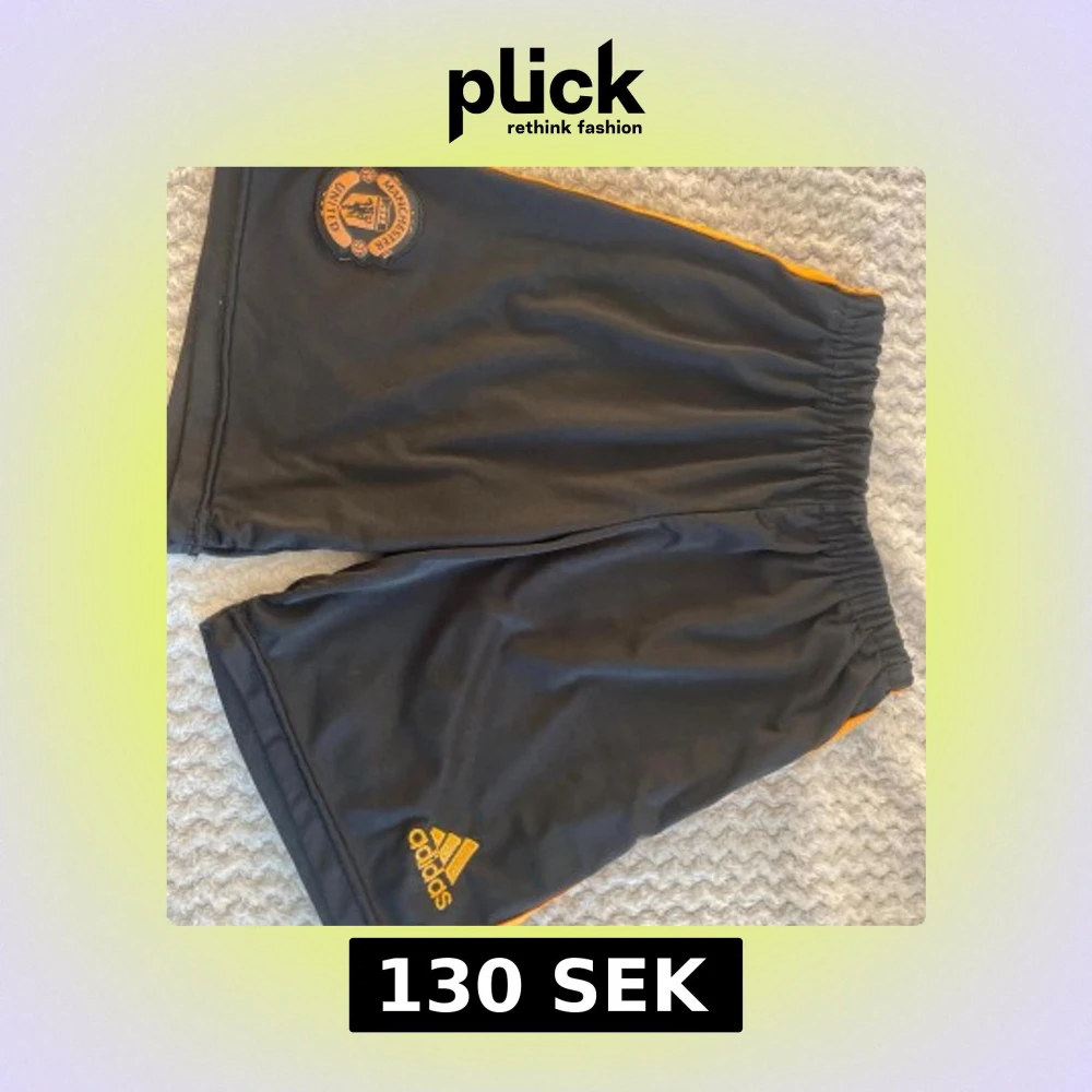 Svarta Manchester United shorts från Adidas med orangea detaljer och klassiska ränder på sidorna. Broderad klubbmärke på ena benet och Adidas-logga på det andra. Tillverkade i polyester med elastisk midja för skön passform.
