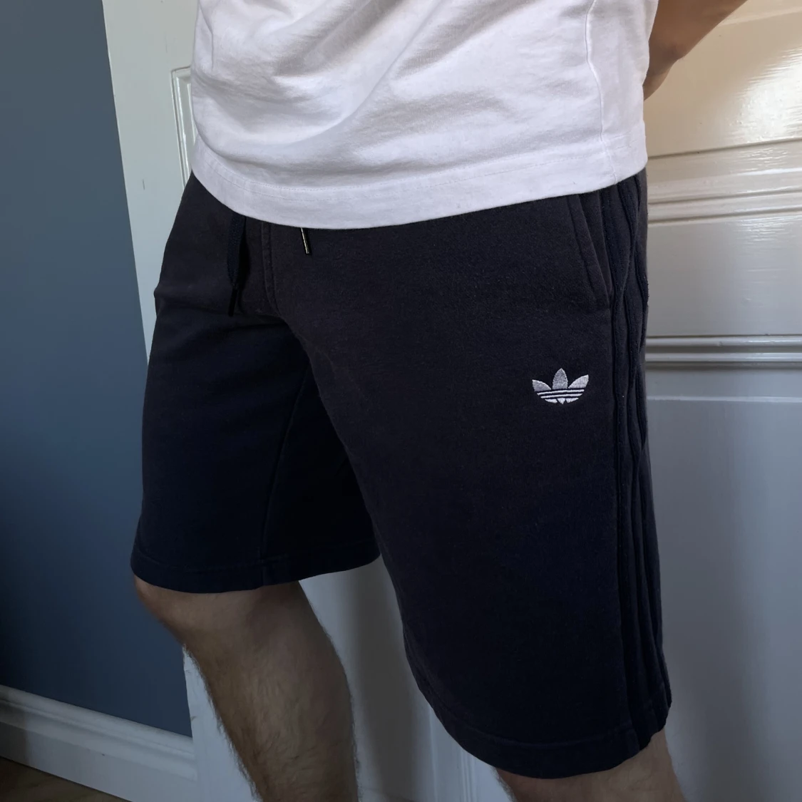 Mörkblåa adidas original shorts köpta i adidasbutik, Barcelona. Väldigt slittåligt material, brukade lira futsal i dessa. Bra kvalité. Nypris: 40 € = 449 kr