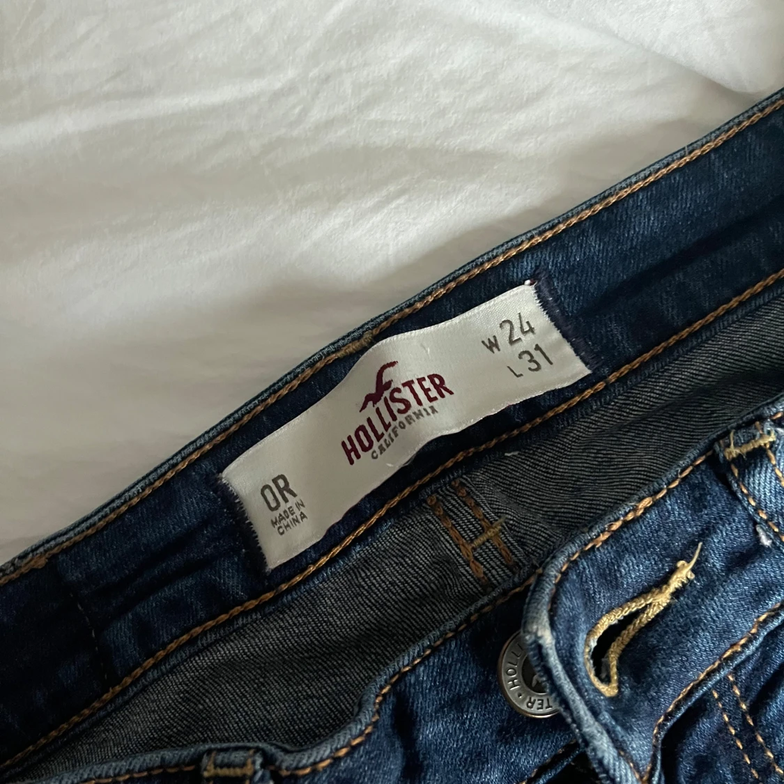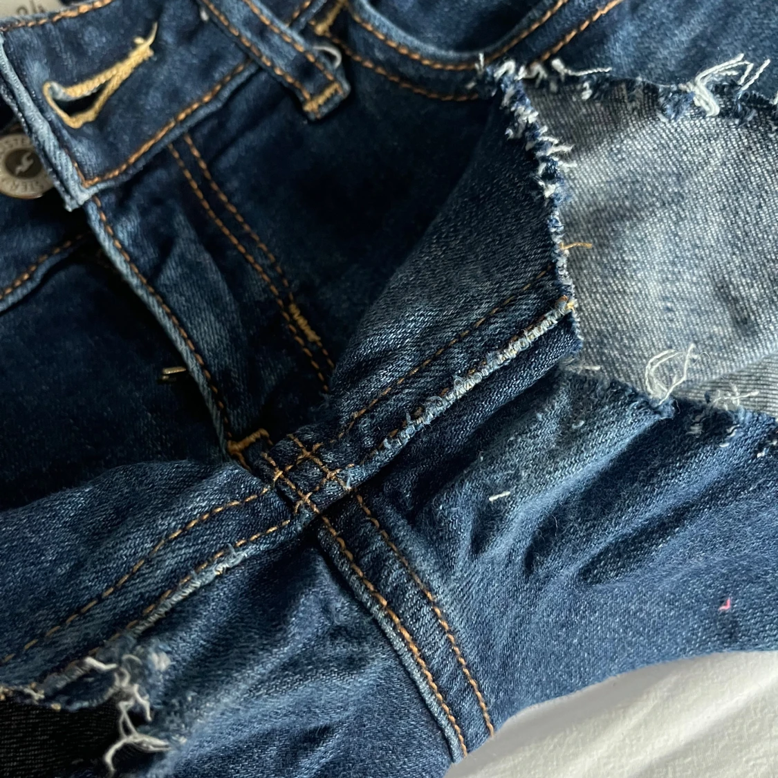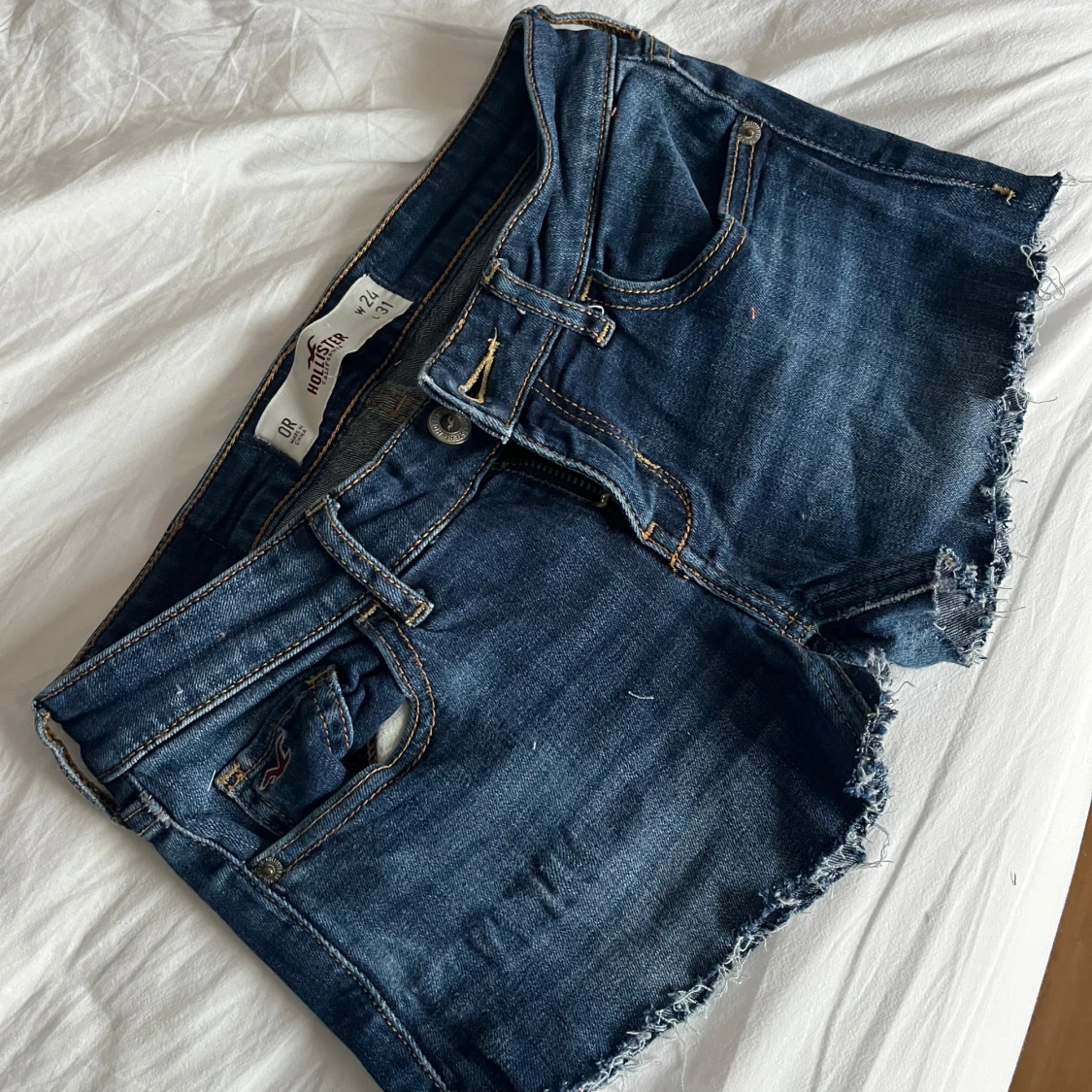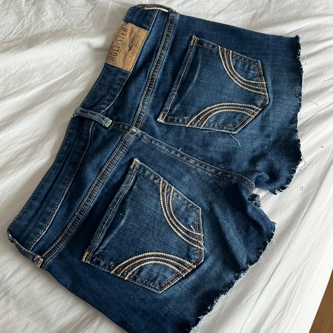 Snygga blå jeansshorts från Hollister med fransiga kanter! Det är lite slitna inne i låren men jag tror att det inte är någon fara eftersom de är shorts! 😍😍😋