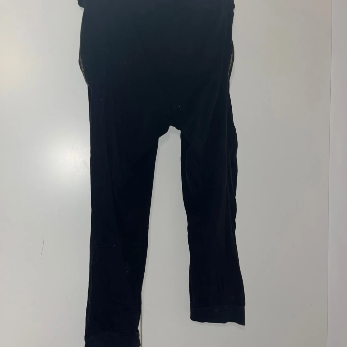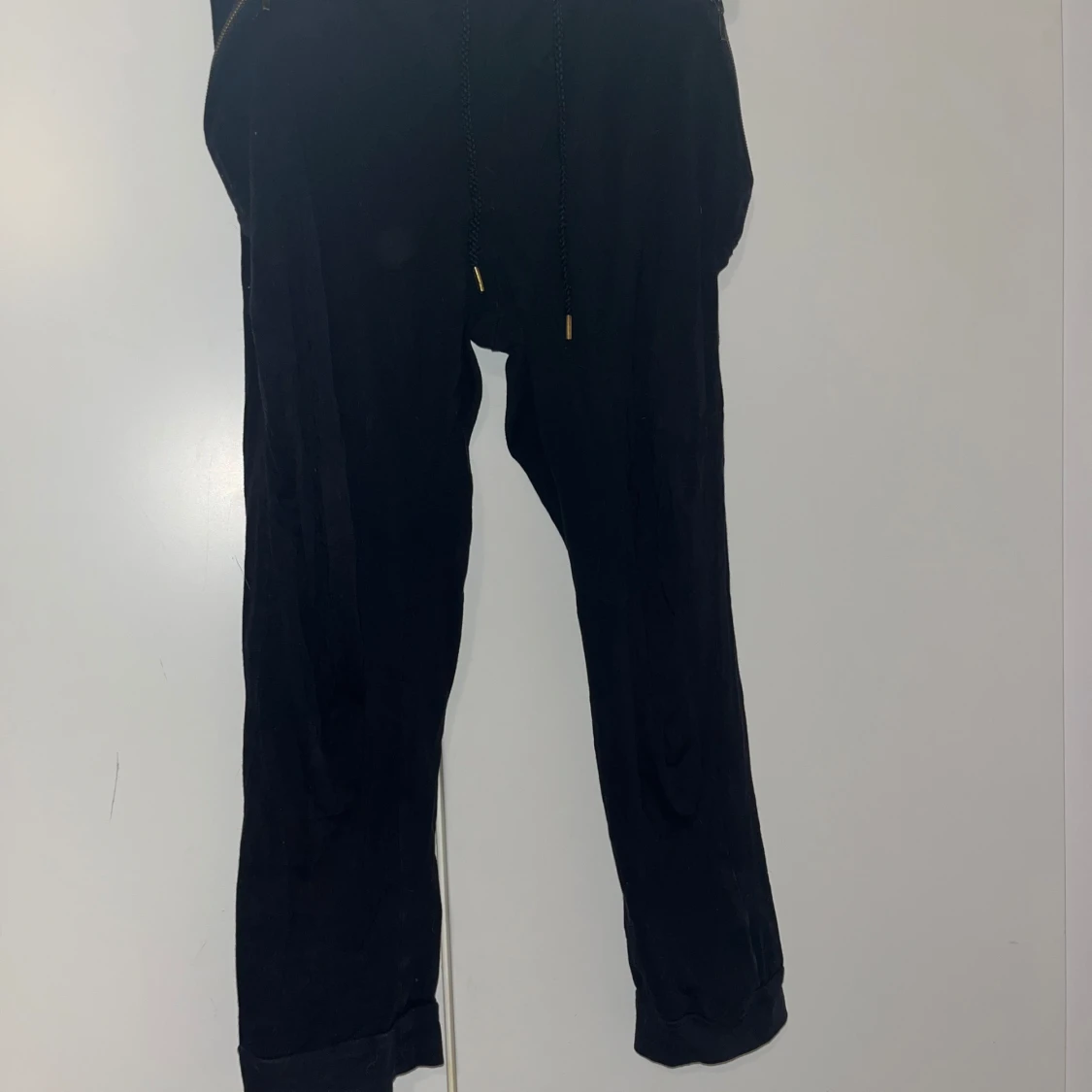 Mustat pehmoiset caprit. Sivuilla koristetaskut. Toisesta sisäsaumasta sauma hieman revennyt. Vyötäröllä kiristysnyörit. Koko M. Haara-lahje n 54cm, vyötärön leveys n 36cm. Eläintalous MMM, lisätietoja saa kysymällä Katso myös muut ilmoitukseni Tarjoa