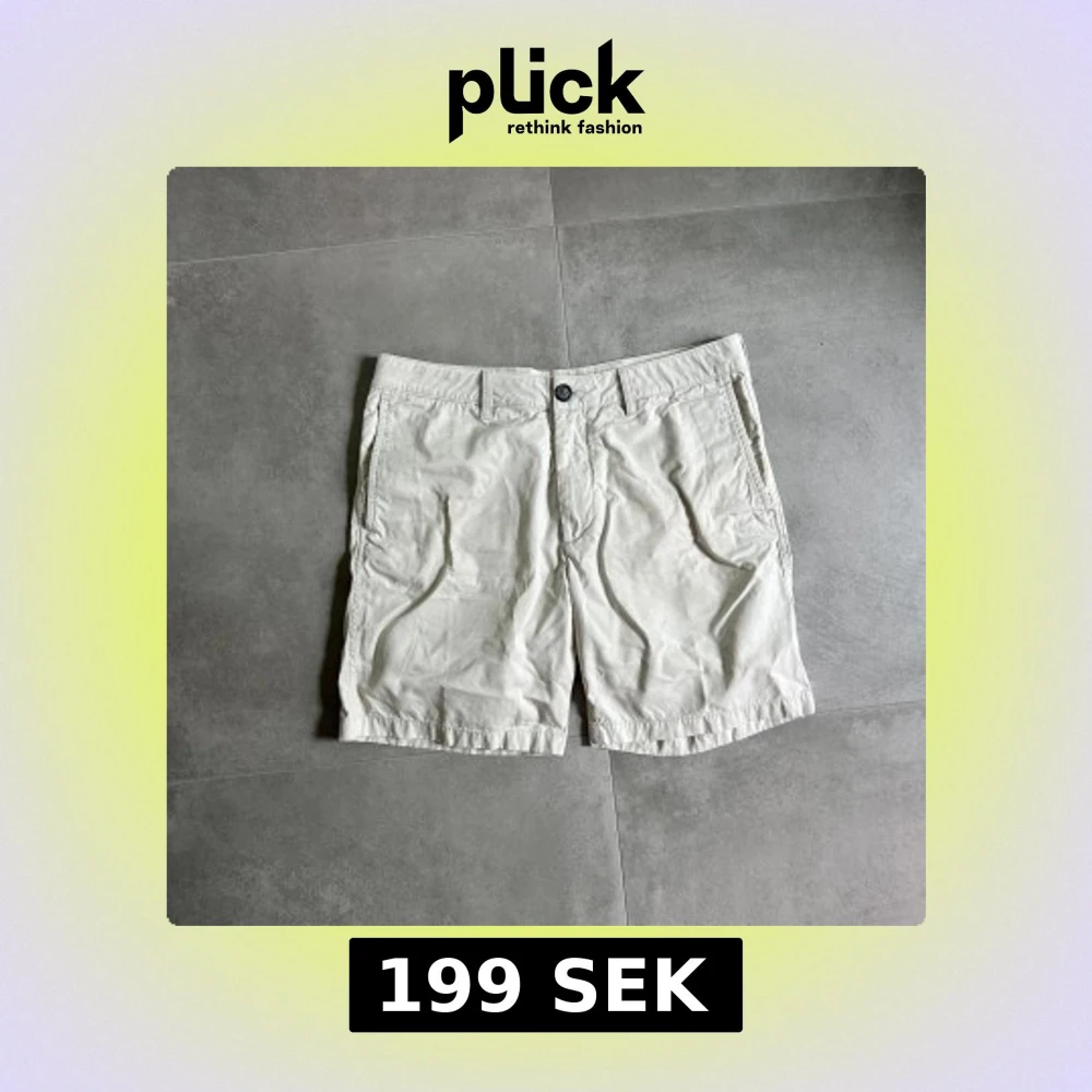 Snygga beige shorts från Arket i ekologisk bomull. Klassisk modell med fickor fram och bak, bälteshällor och knappstängning. Perfekta för varma dagar och enkel att matcha med allt. Stilren och clean look. Artnr: B355