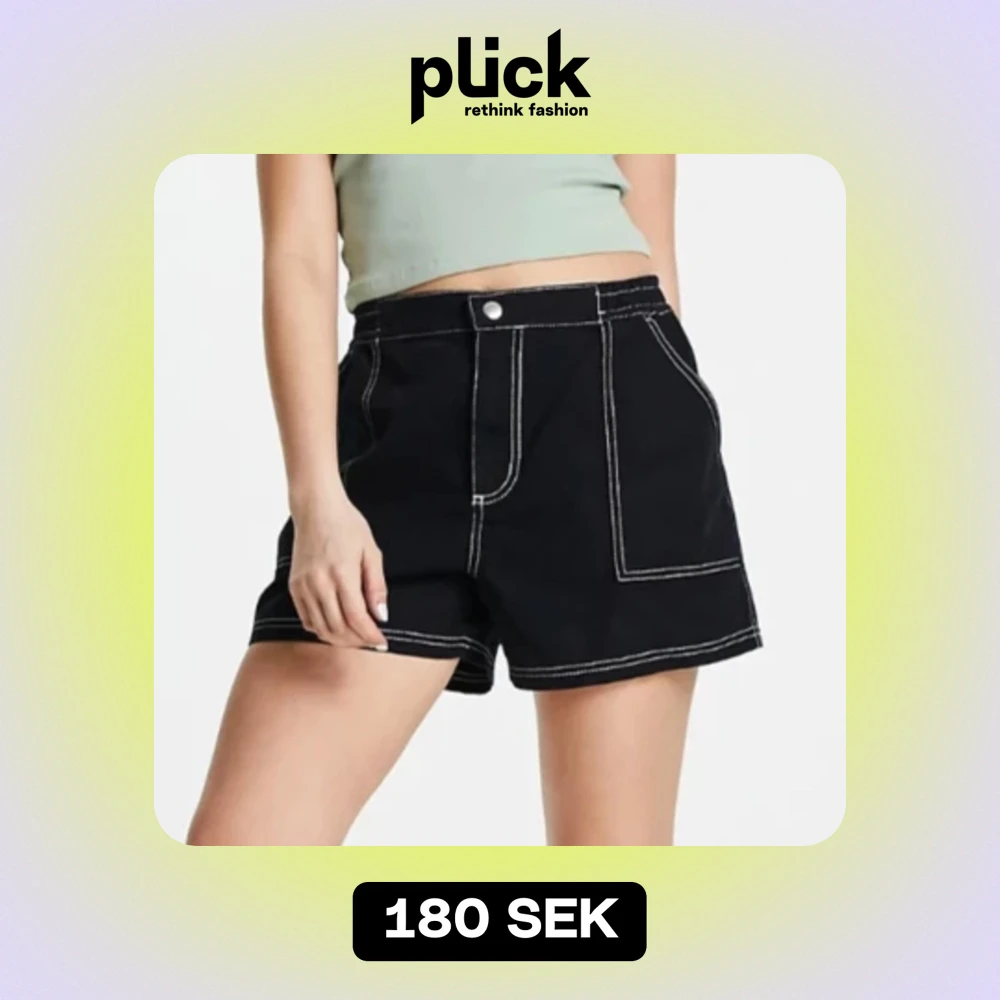 Skitsnygga svarta cargoshorts med vita detaljer, ASOS design, i storlek 40. Helt nya, endast testade. Köpta från ASOS. Var lite för stora för mig, men hann inte returnera dem i tid tyvärr. Lånade bilder, men bara att skriva så fixar jag andra bilder.