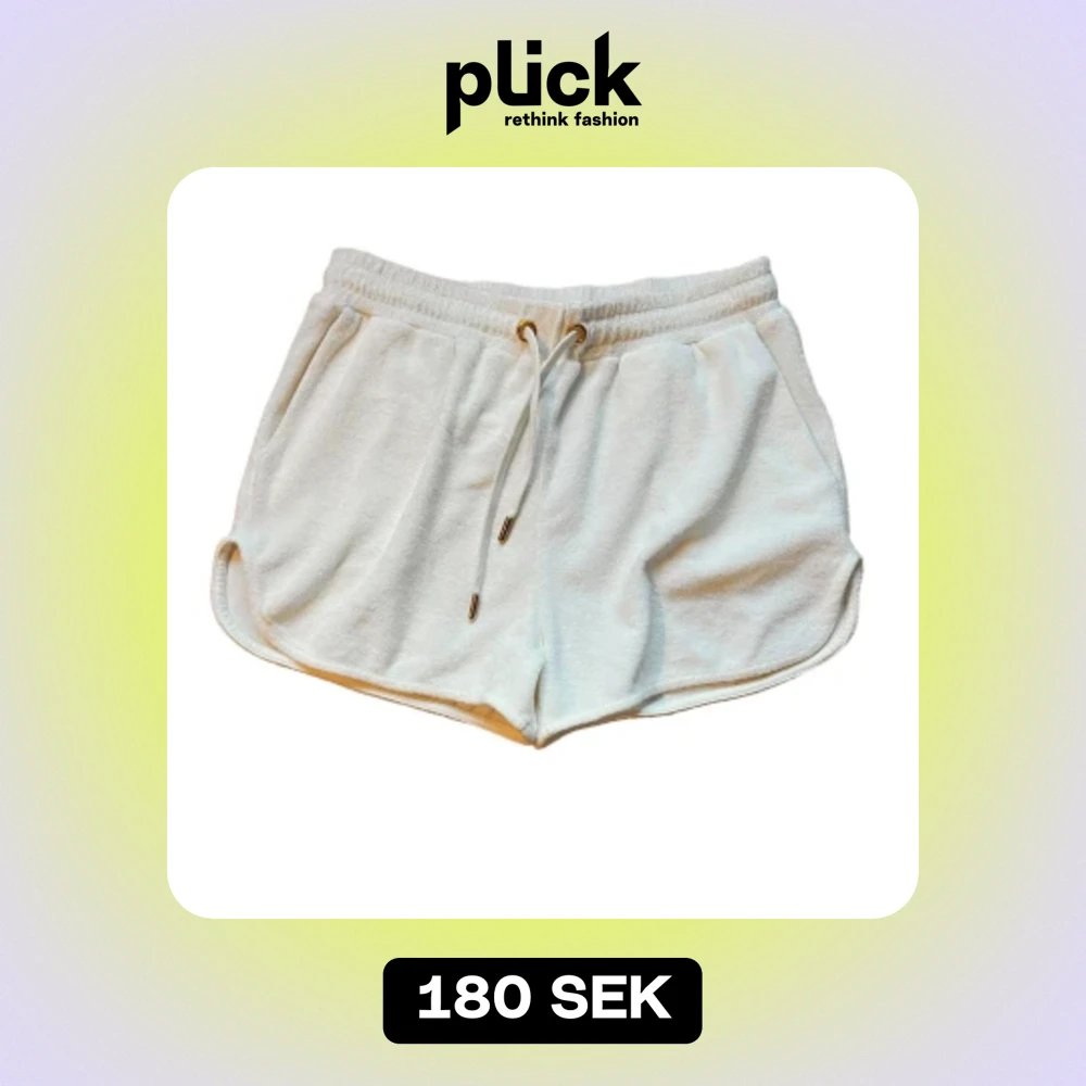 Aveny shorts i frotté. Vita/björk strl XS. Eko bomull + polyester. Fickor. Dragsko i midja. Toppskick! Oanvända. Tvättade. Husdjur i hemmet, rökfritt hem.