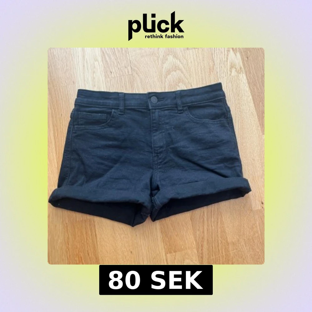 Svarta shorts från Cubus i klassisk femficksmodell med upprullad kant nertill. De har bälteshällor, knapp och dragkedja framtill. Perfekta för sommaren och enkla att matcha med allt. Materialet känns mjukt och stretchigt.
