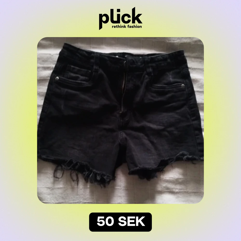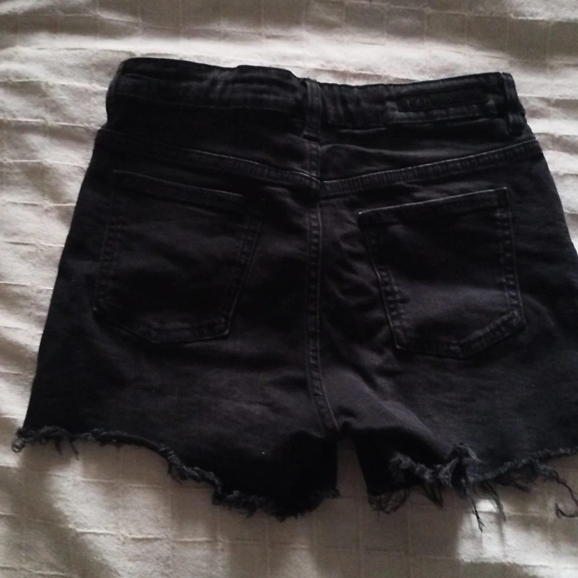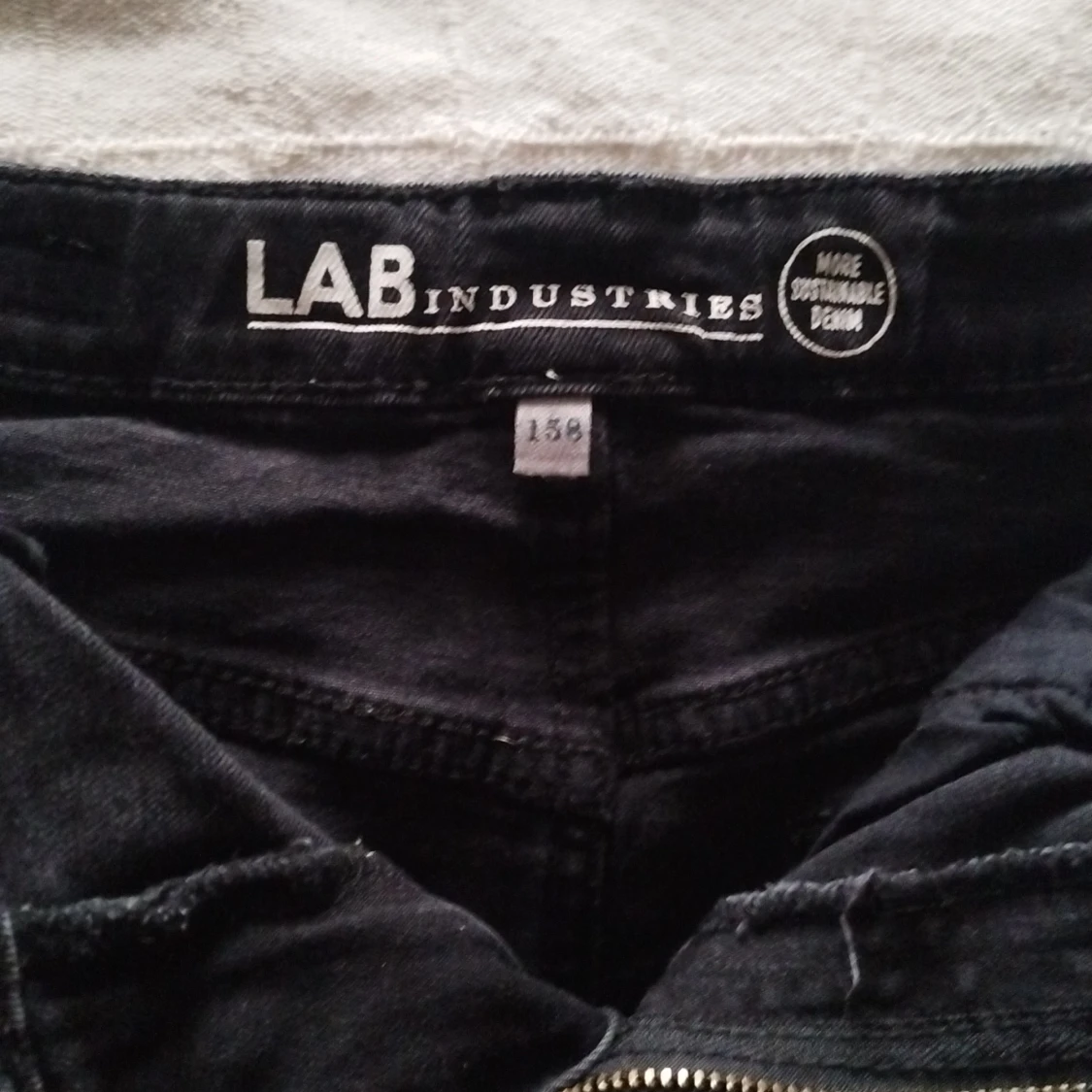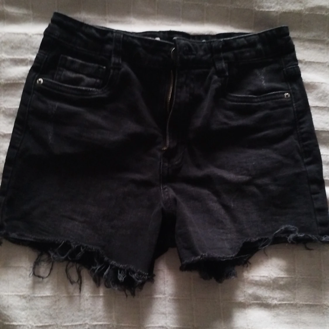 Säljer ett par svarta jeansshorts från LAB Industries. De har en cool, sliten look med fransiga kanter och en dragkedja framtill. Perfekta för en avslappnad stil!