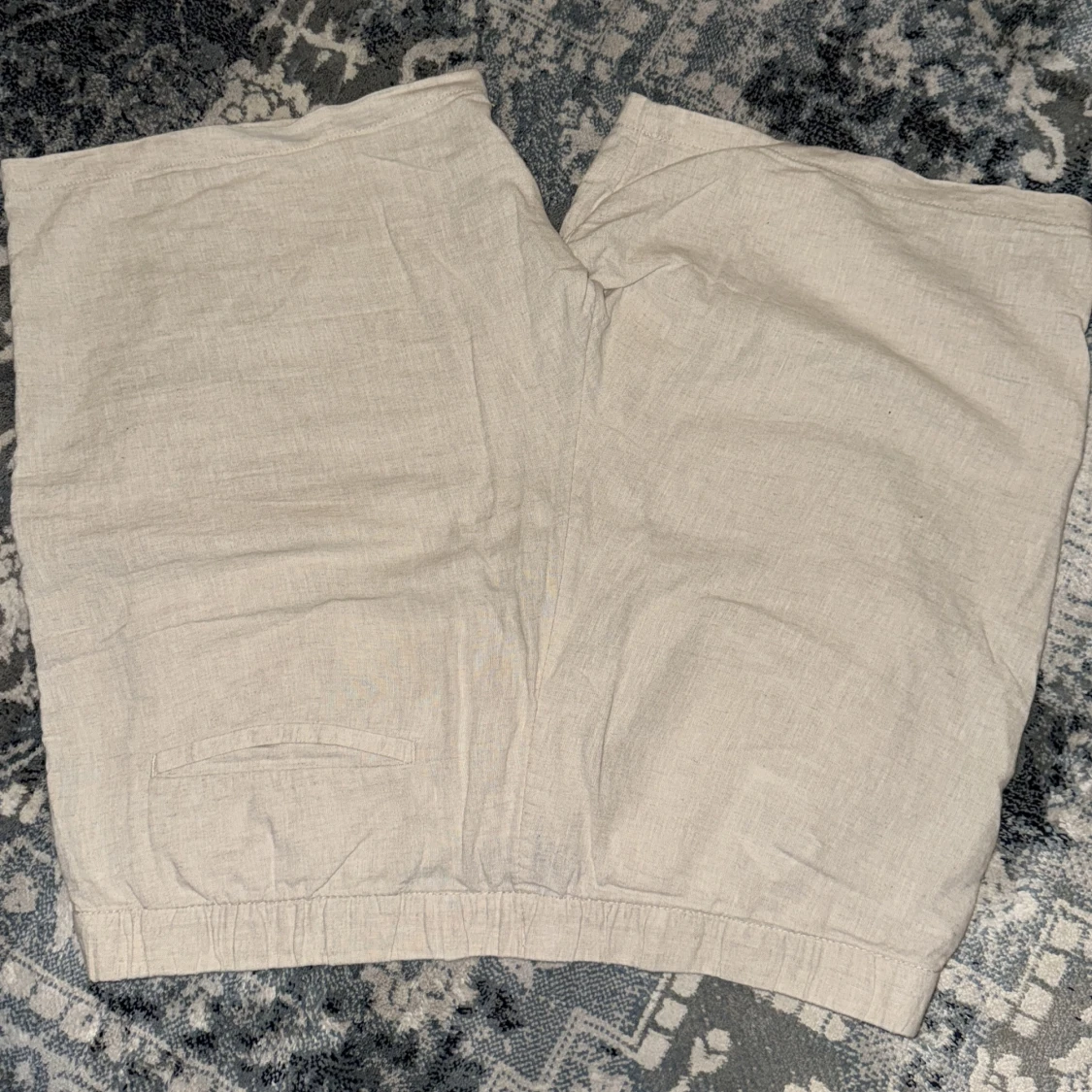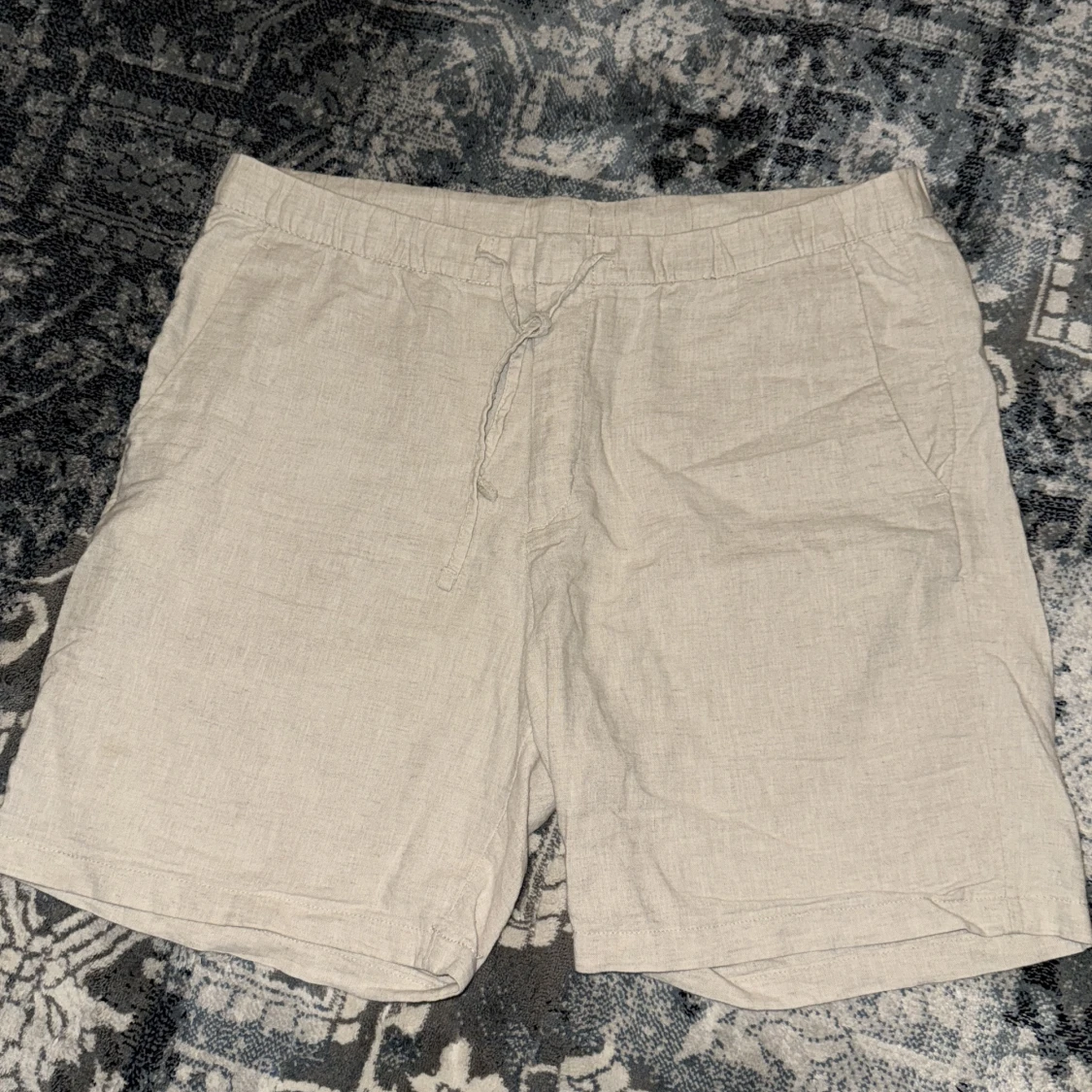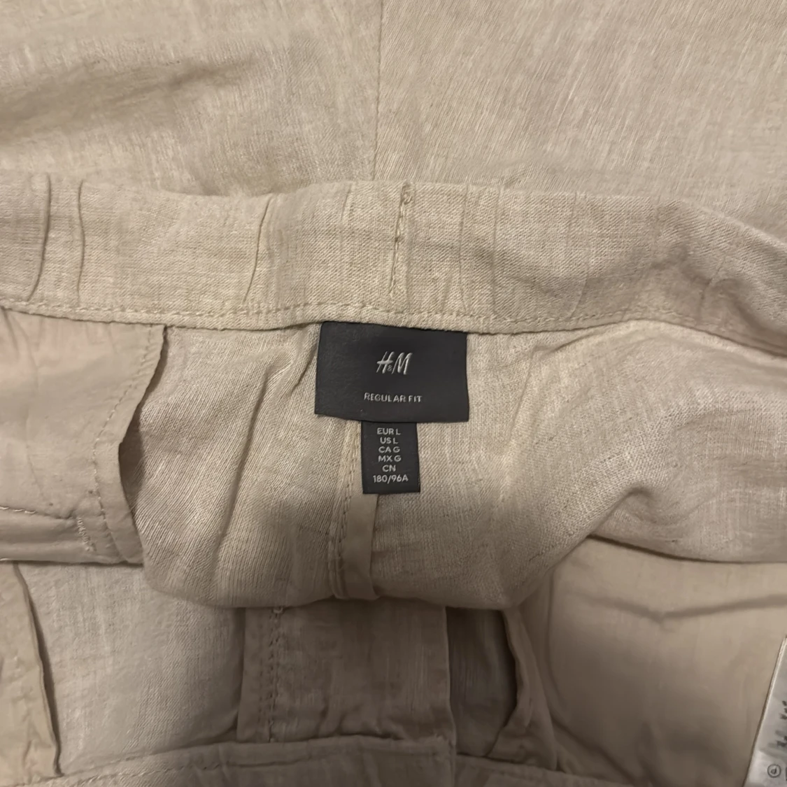 Snygga och luftiga beige shorts från H&M i linneblandning. Modellen har normal passform, snörning i midjan och sidofickor. Perfekta för varma dagar och enkel att matcha med olika toppar.