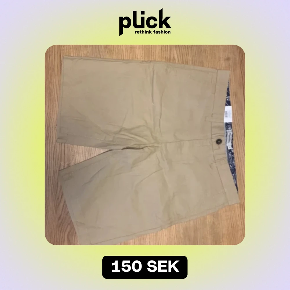 Ny pris 299kr Helt oanvända shorts Ett par beige shorts med knapp och dragkedja. De har en enkel design och ser bekväma ut för vardagsbruk. Blandning mellan linne och bomull