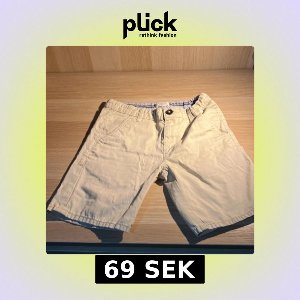 Säljer ett par beige shorts från Lindex. De har en knapp och dragkedja framtill samt fickor på sidorna och en bakficka med knapp. Perfekta för varma dagar.