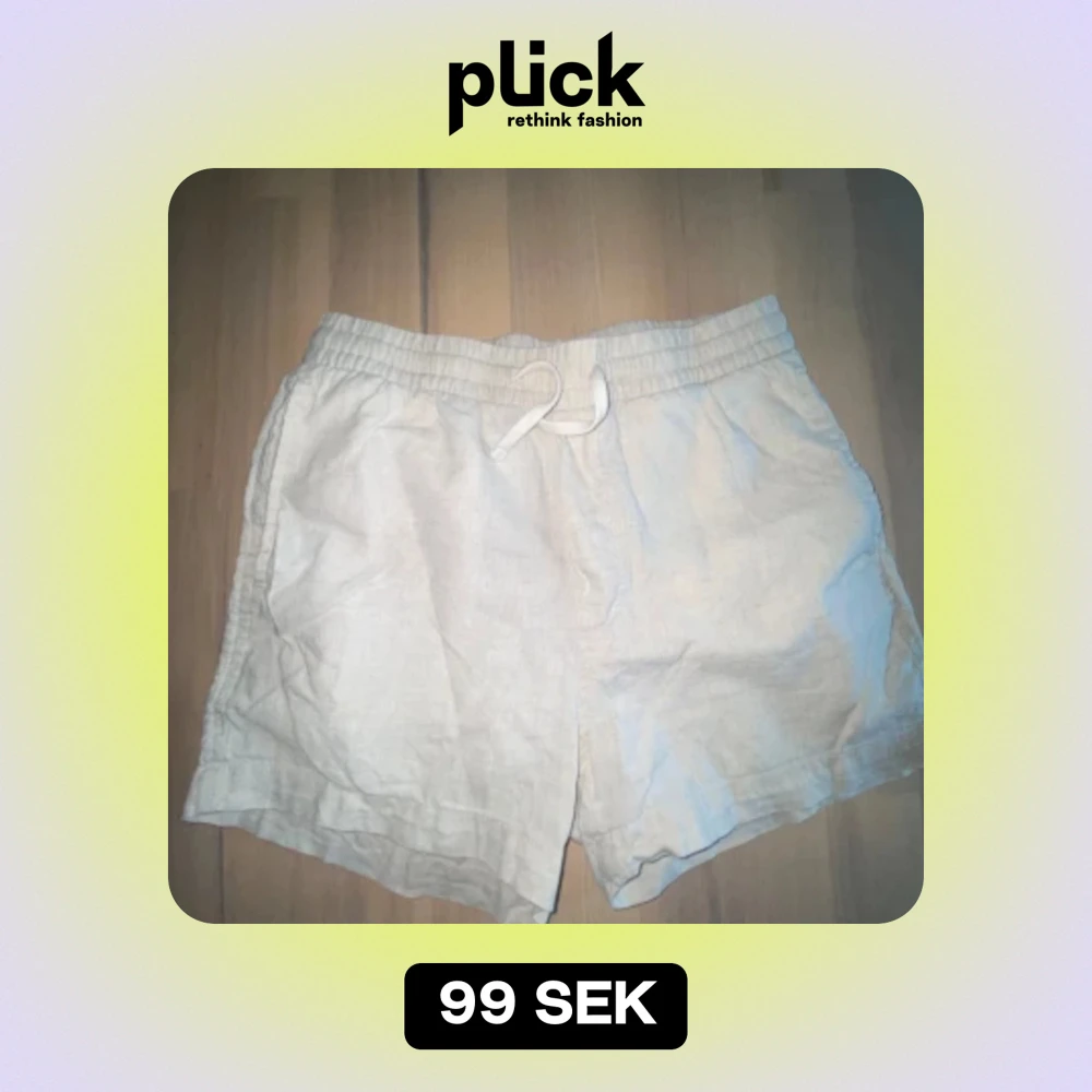 Säljer ett par bekväma linne shorts med snörning i midjan. De är perfekta för sommaren och har en avslappnad passform. De passar perfekt till varma dagar. De har en elastisk midja och en bakficka. Väldigt fina men är för små för mig.