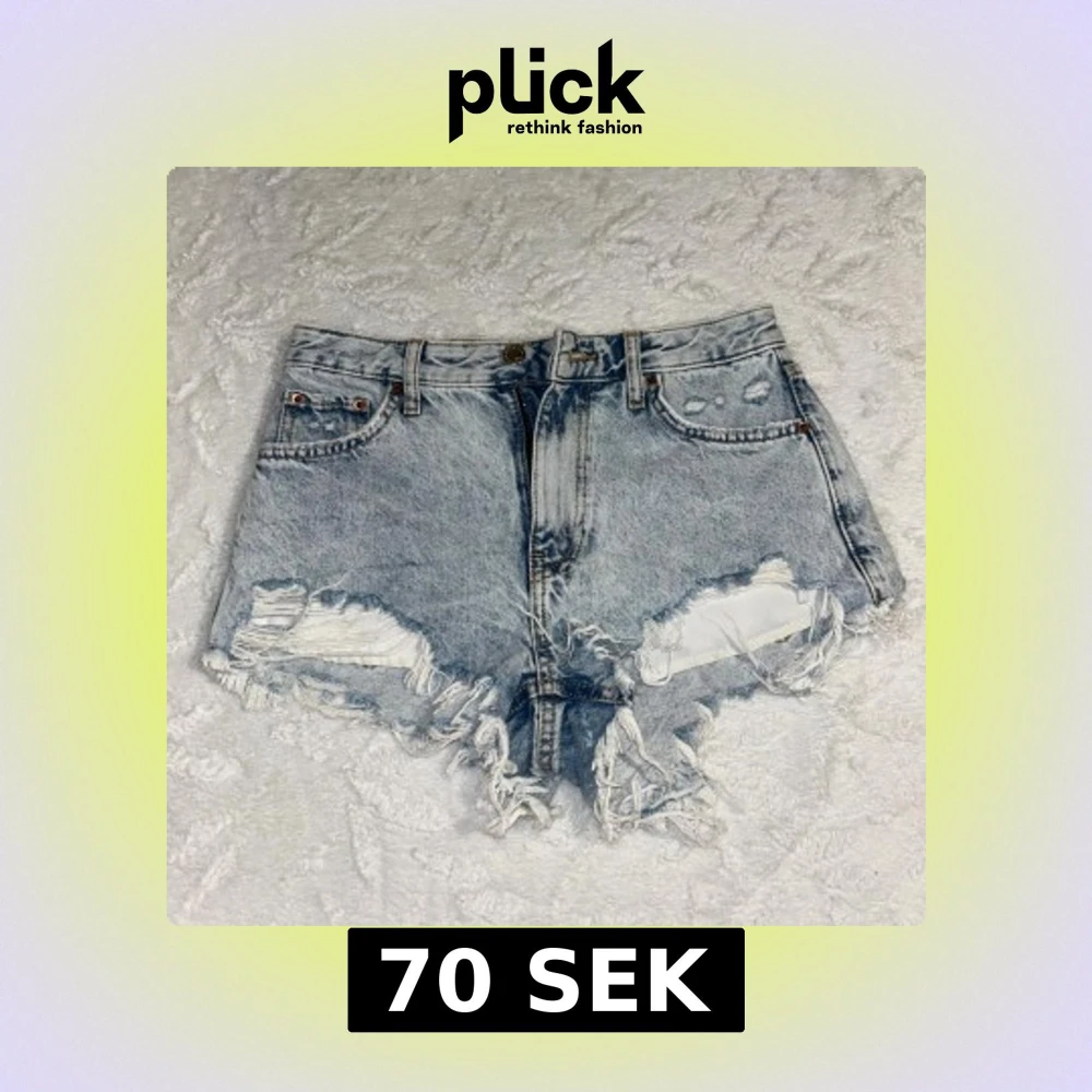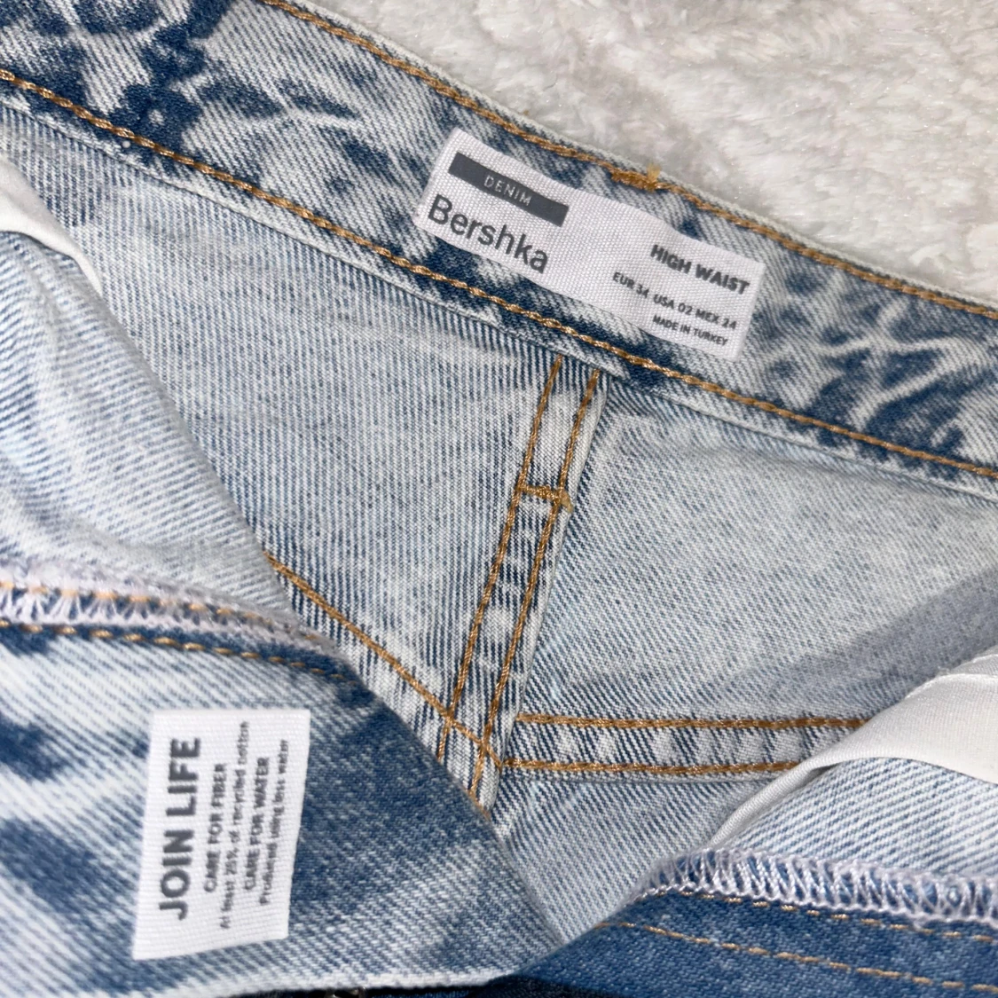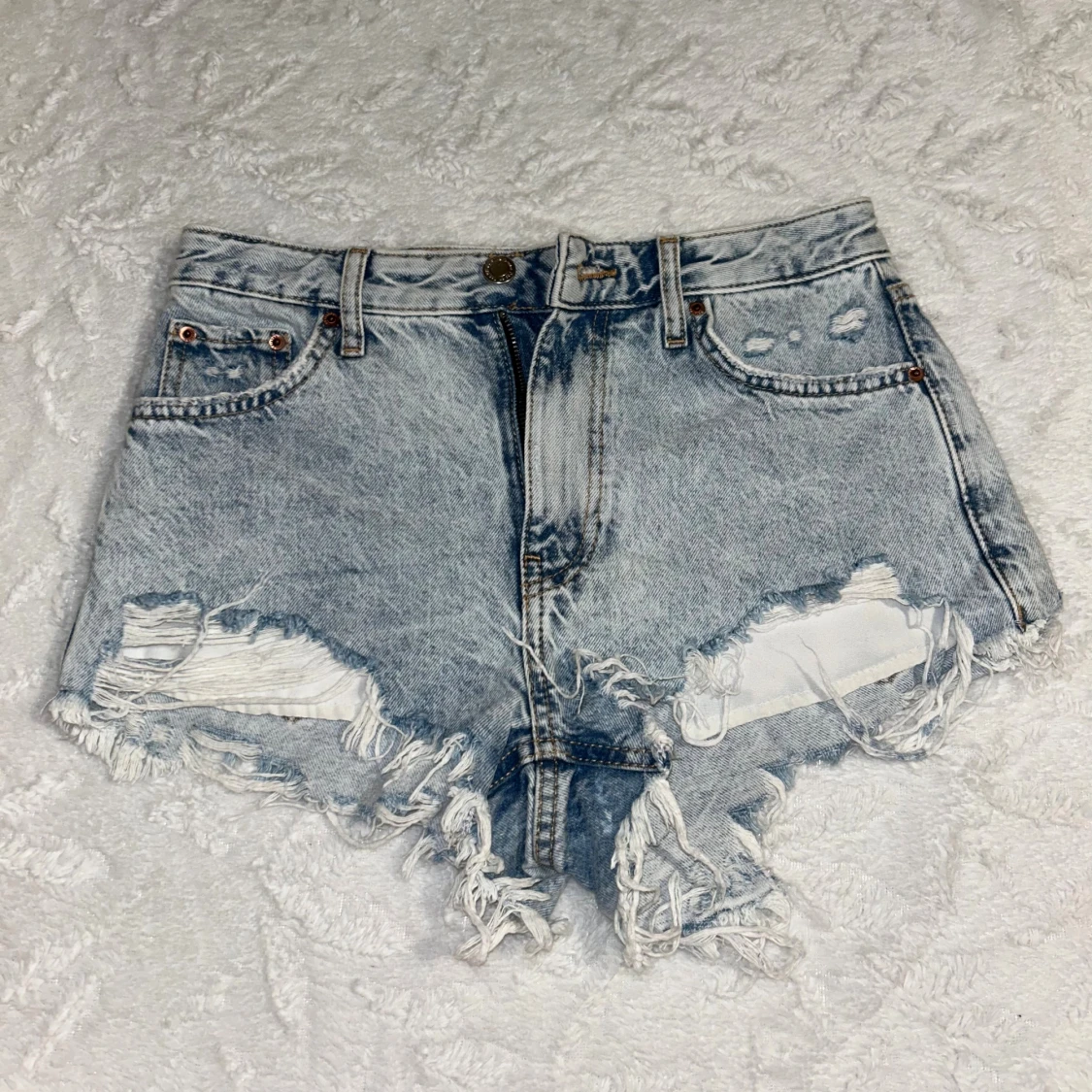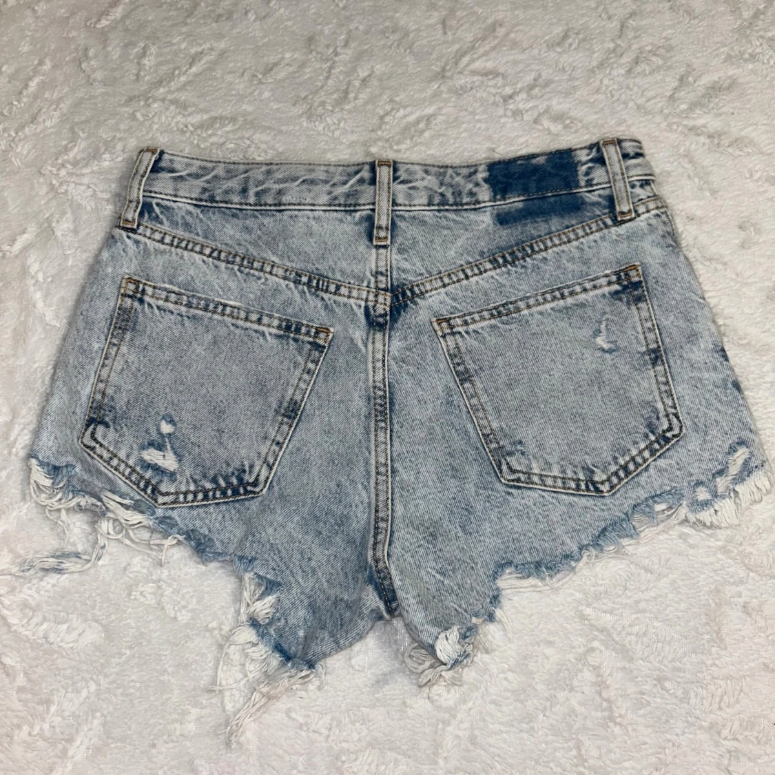 Snygga högmidjade jeansshorts från Bershka i ljusblå denim. De har slitna detaljer, fransig kant och klassisk femficksdesign. Skriv för flera bilder 🥰