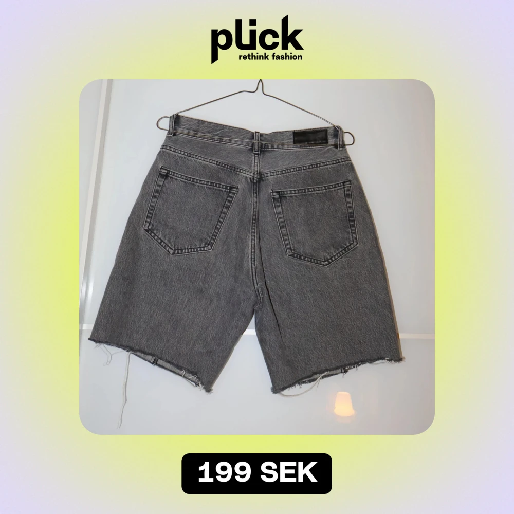 Säljer ett par grå jeansshorts från Bik Bok i storlek M. De har en cool, rå kant och klassisk femficksdesign. Perfekta för en avslappnad sommarlook. Passar både till vardags och fest!