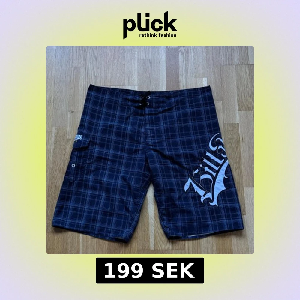 Billabong board shorts i färgen blå med rutigt mönster. Storlek: 40, Midja: 50 cm Ytterben: 57.5 cm Benöppning: 30 cm Material: 100% Polyester.