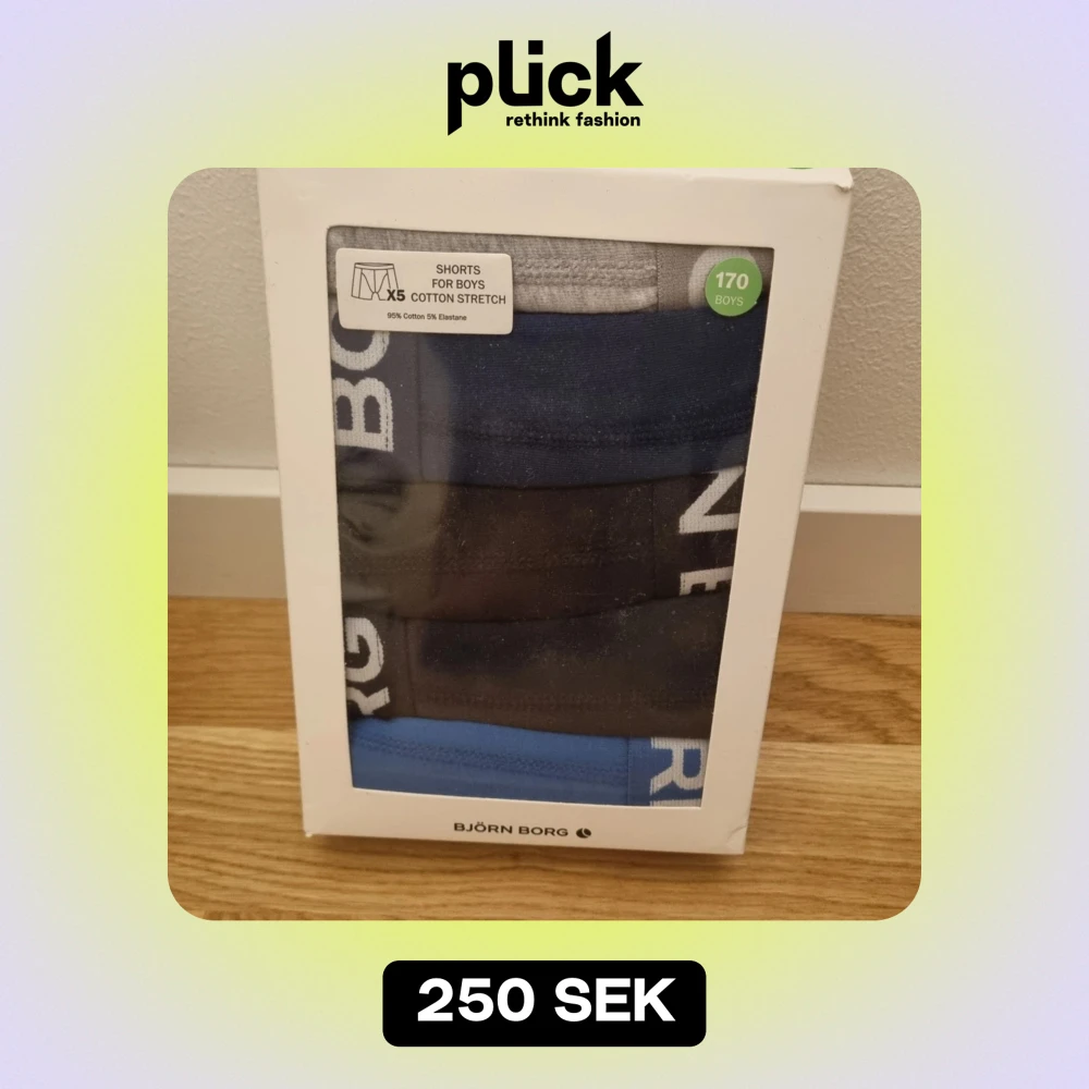 Säljer ett flerpack kalsonger för pojkar från Björn Borg i storlek 170. De är gjorda av bomull med stretch för extra komfort. Färgerna inkluderar grå, blå och svart. Perfekta för vardagsbruk och sportaktiviteter.