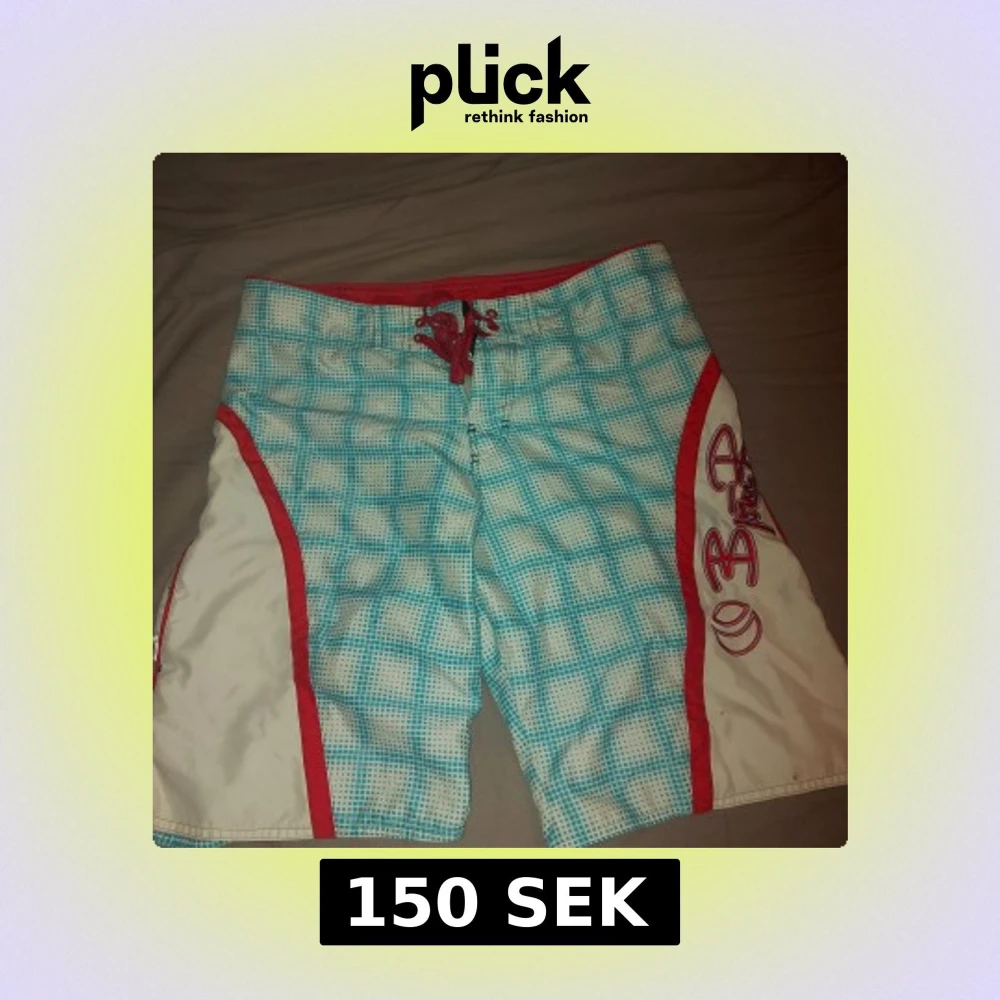 Snygga badshorts från Björn Borg med blått och vitt rutmönster och röda detaljer. Shortsen har snörning framtill och en praktisk ficka på sidan. Perfekta för en dag på stranden eller vid poolen. Goofy ai😭