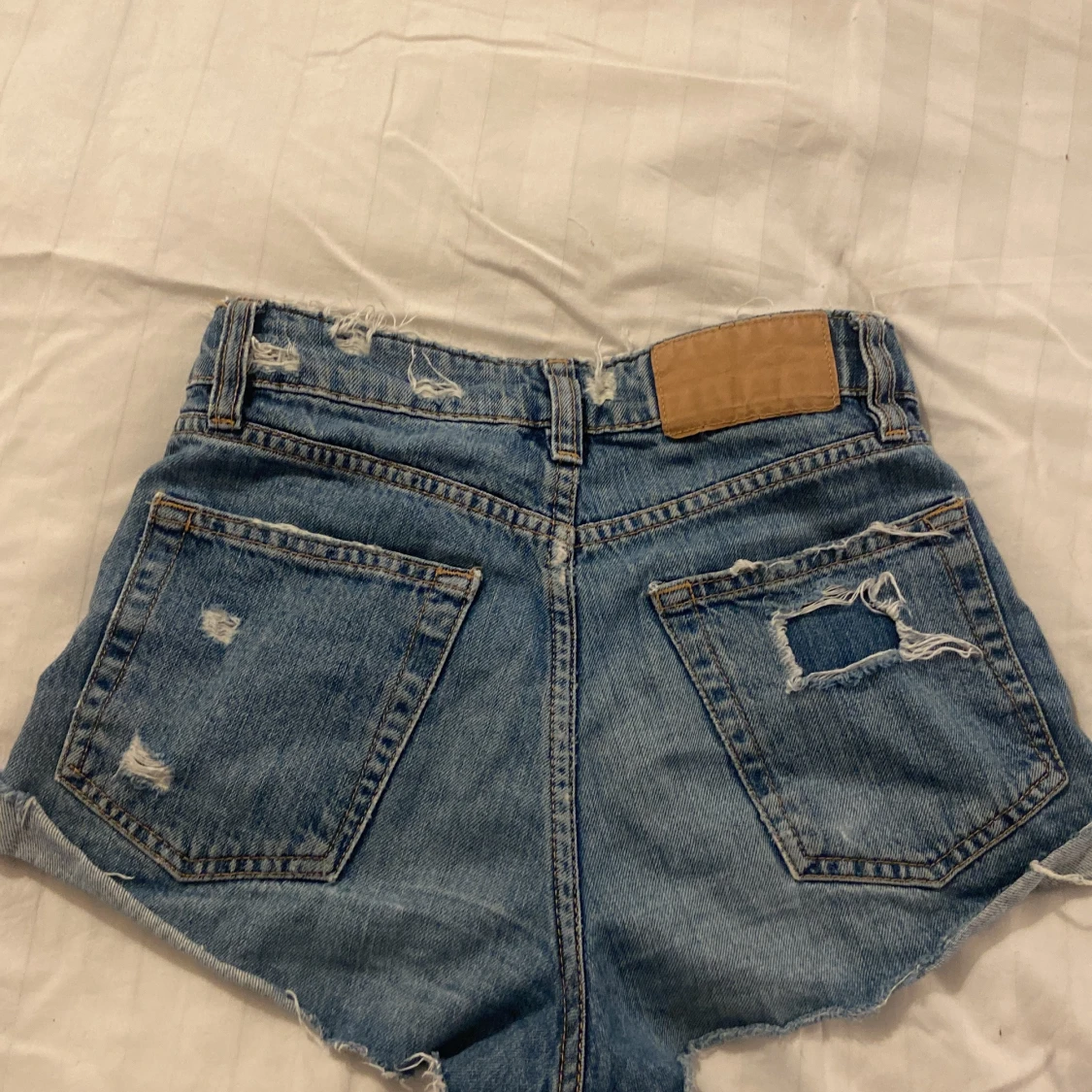 Jätte snygga blåa mid/low waist jeansshorts från H&M i storlek 32. Shortsen har flera slitningar och hål både fram och bak för en riktigt trendig look. Perfekta för sommaren. Pris kan diskuteras.