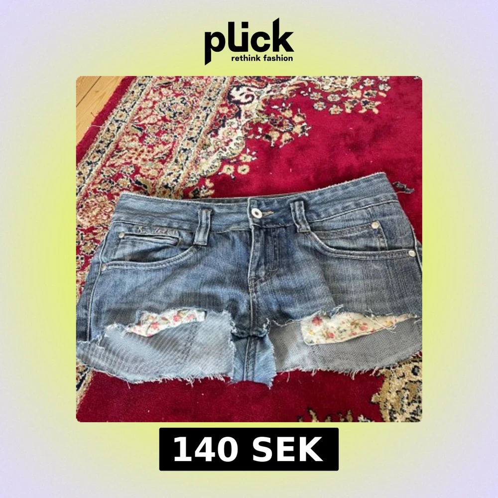 Supersnygga blå jeansshorts från Bondelid med råa, fransiga kanter och blommigt tyg som syns genom slitningarna framtill. Klassisk femficksmodell, lågmidjade och RL-detalj bak. Klippt de själv då jeansen var sönder💓💓 hör av dig vid frågor och funderingar!