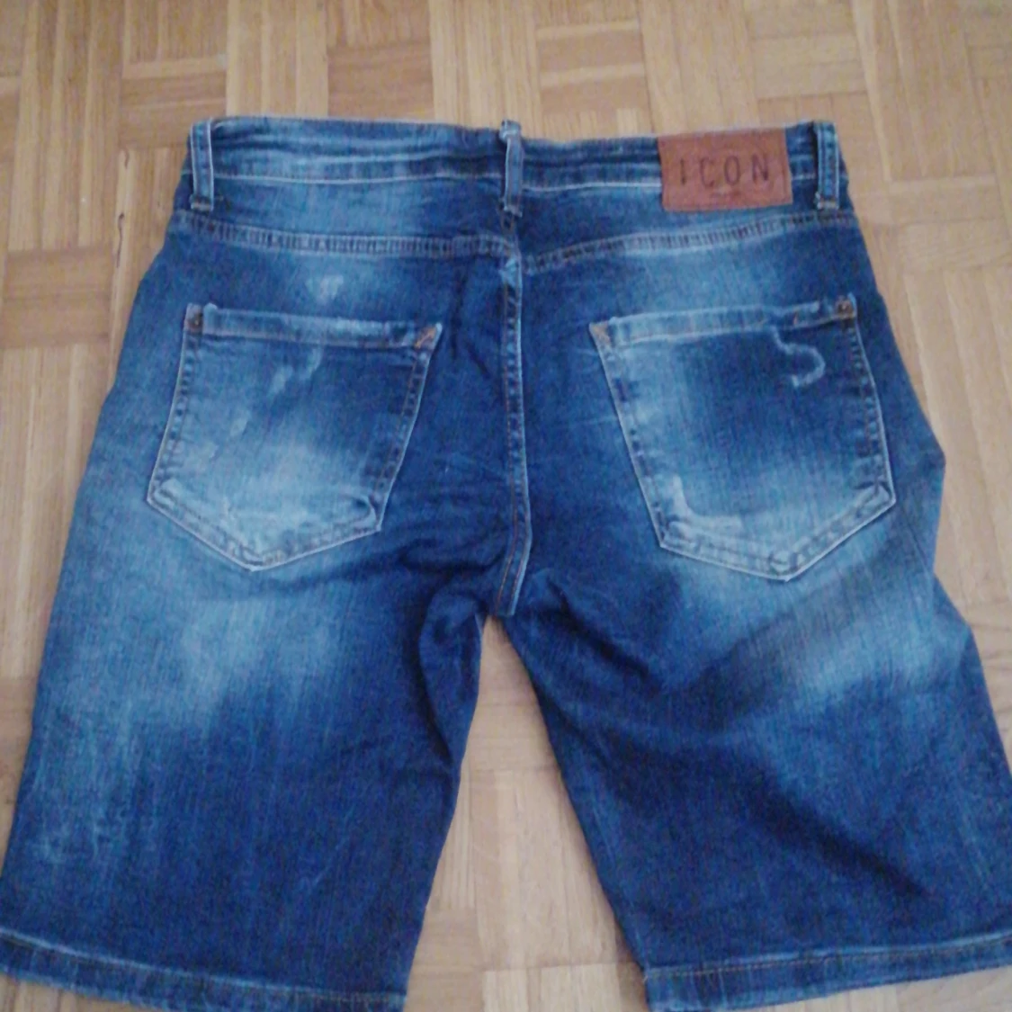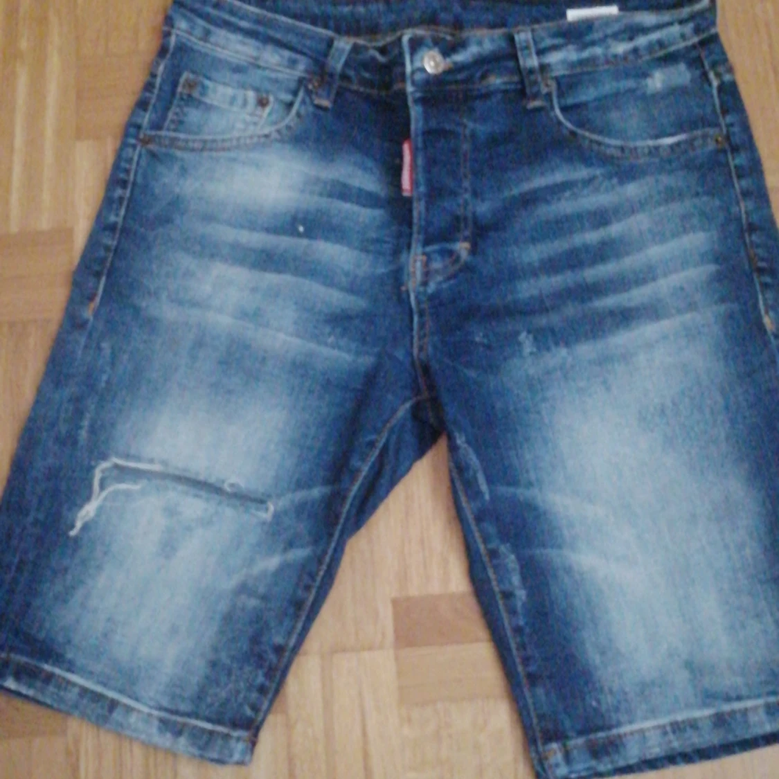 Snygga blå jeansshorts från Dsquared2 med slitna detaljer och en klassisk femficksdesign. Shortsen har en knappgylf och en läderpatch med 'ICON' på baksidan. Perfekta för en avslappnad stil.