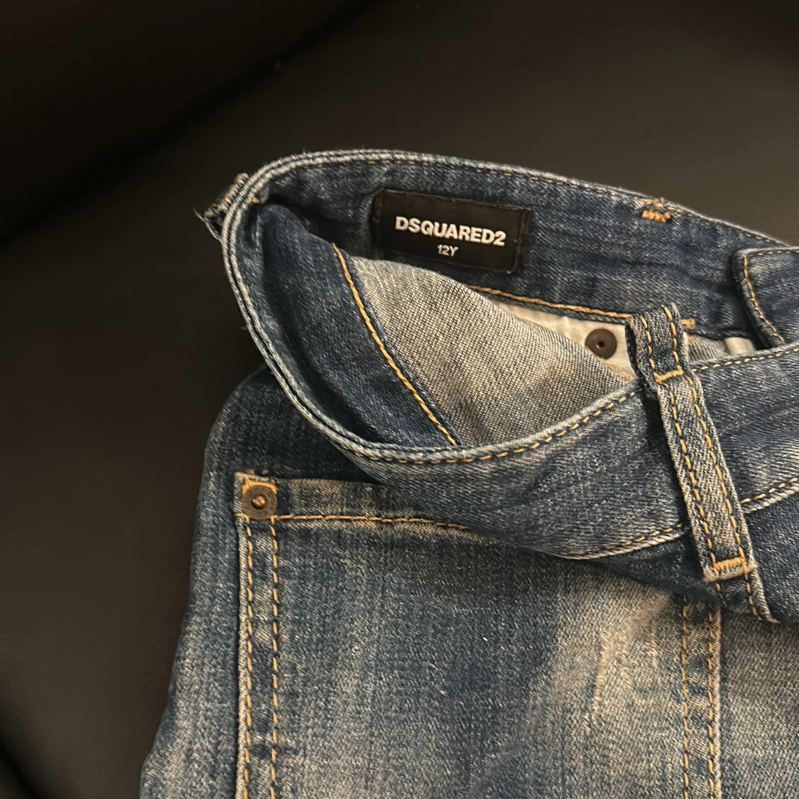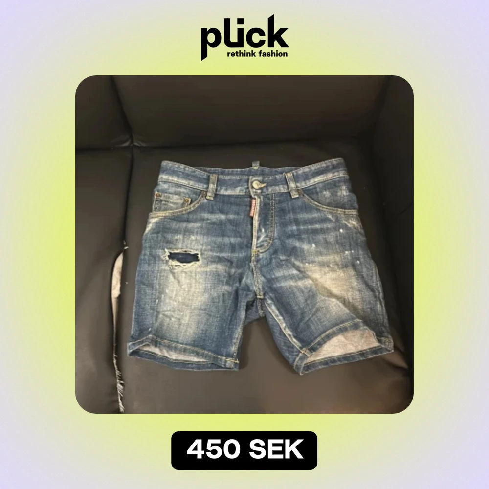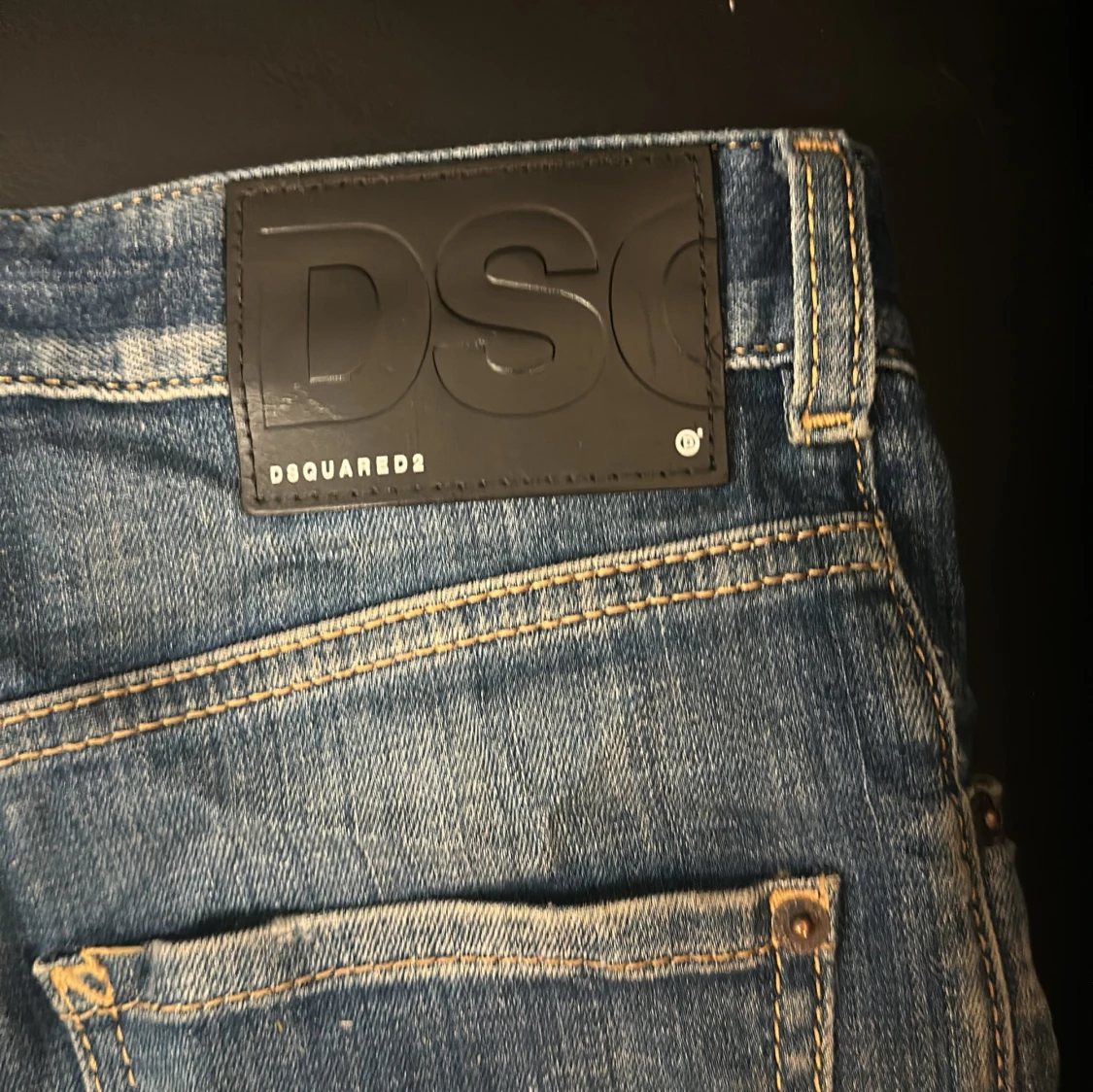 Säljer ett par snygga blå jeansshorts från Dsquared2. De har en cool slitning och en liten reva på framsidan som ger dem en avslappnad look. Shortsen har klassisk femficksdesign och en knappgylf. Perfekta för sommardagar!