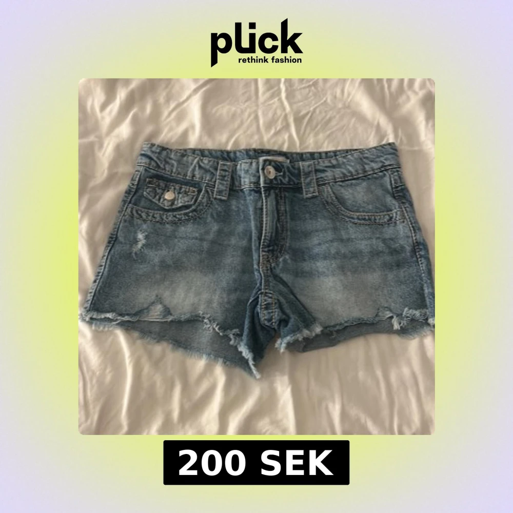 Snygga blå jeansshorts från Gina Tricot med fransig kant och slitna detaljer. Klassisk femficksmodell med knappar och bälteshällor. Perfekta för varma dagar och har en avslappnad, trendig look.
