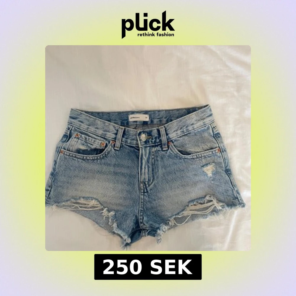 Snygga ljusblå jeansshorts från Gina Tricot med råa kanter och slitna detaljer. Klassisk femficksmodell med knapp och dragkedja framtill. Perfekta för sommaren och ger en avslappnad vibe till din outfit.