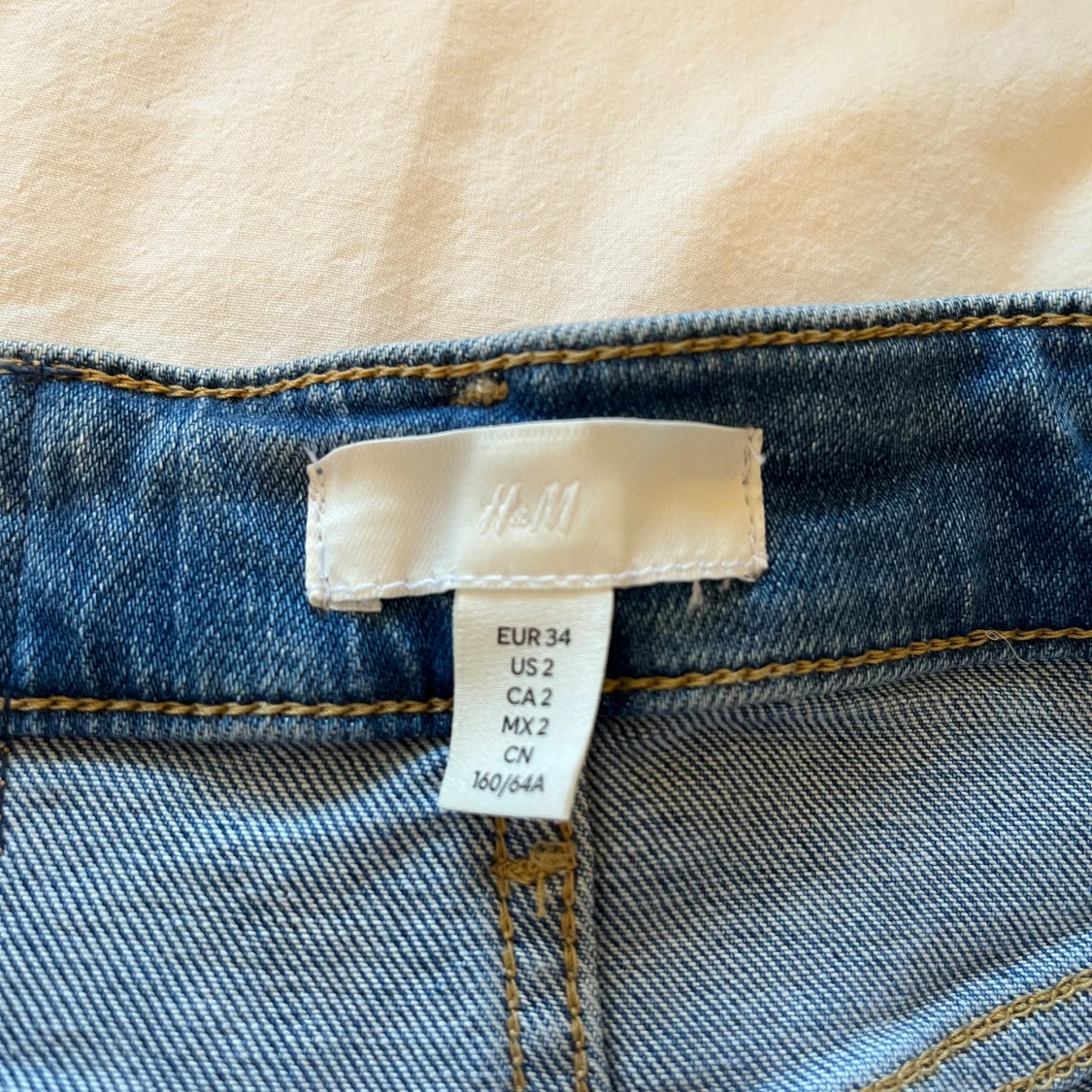 Säljer ett par klassiska blå jeansshorts från H&M. De har normal passform, är lågmidjade och har uppvikta benslut. Perfekta för sommaren och enkla att matcha med olika toppar. Shortsen är i storlek 34.