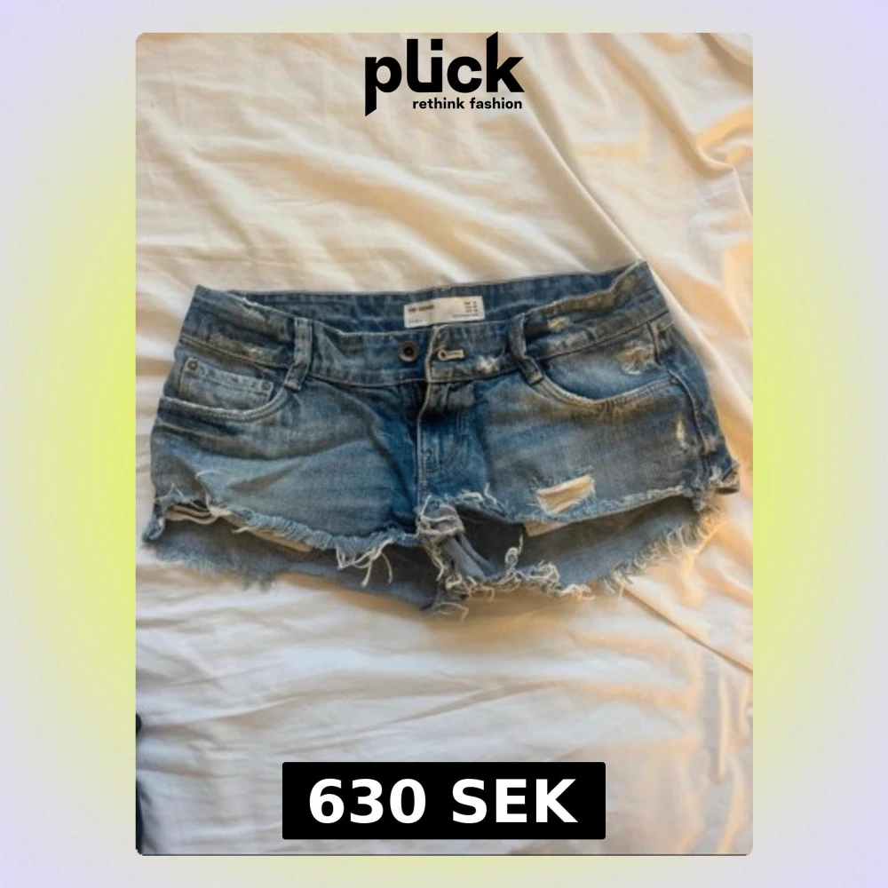 Snygga blå jeansshorts från Zara med slitna detaljer. Klassisk femficksmodell med låg midja och dragkedja. Perfekta för varma dagar och en avslappnad stil.