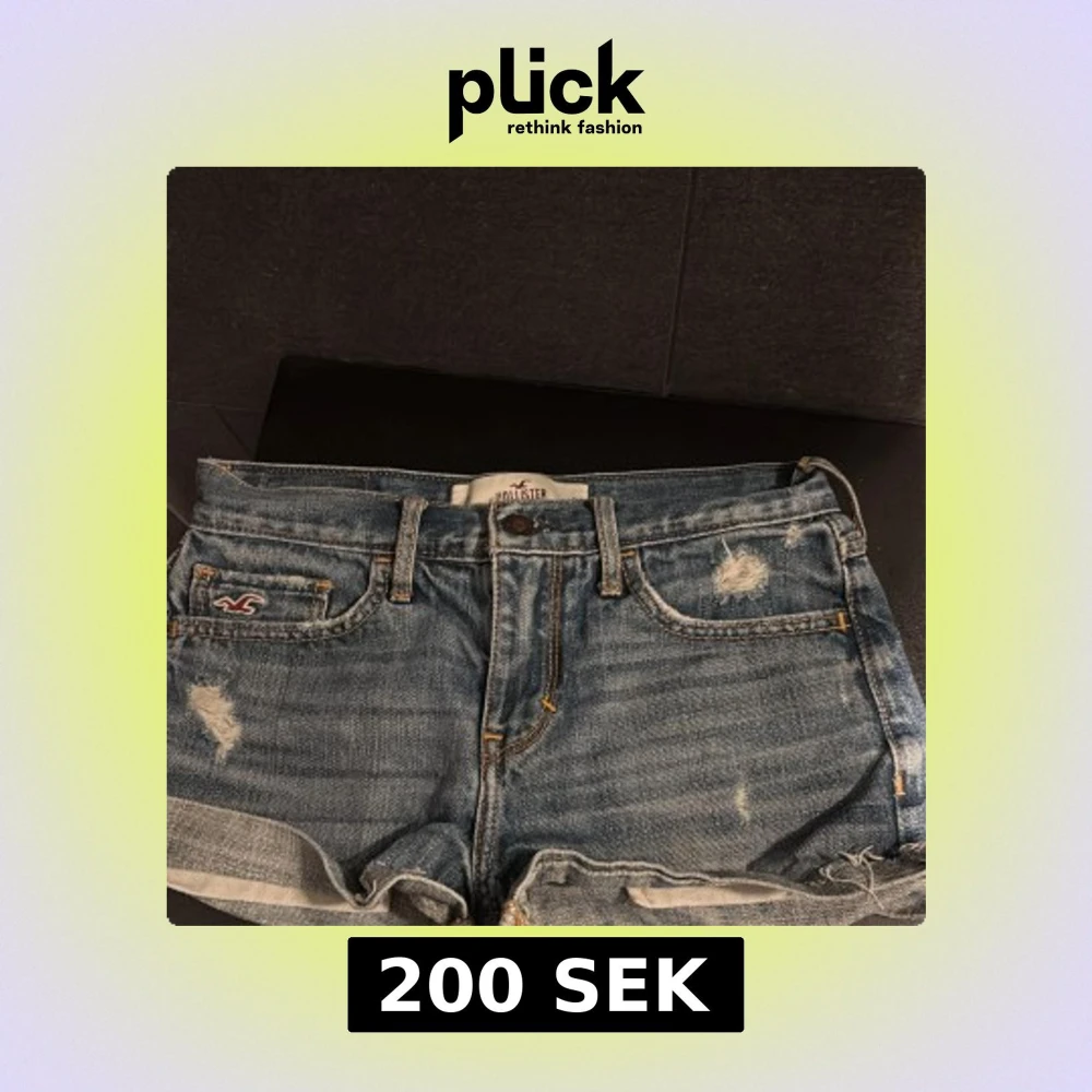 Säljer ett par snygga blå jeansshorts från Hollister med slitna detaljer och uppvikta kanter. Klassisk femficksmodell med knapp och dragkedja framtill. Skit snygga men passar tyvärr inte mig🥰