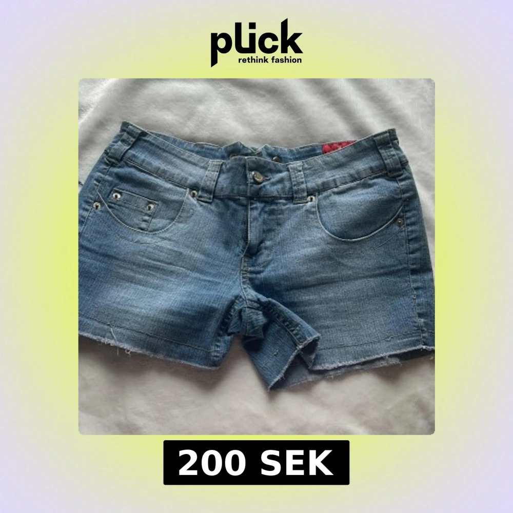 Säljer ett par klassiska blå jeansshorts från Hongma med fem fickor, bälteshällor och råa kanter nertill. Shortsen har knapp- och dragkedjestängning samt dekorativa nitar vid fickorna. Perfekta för varma dagar!