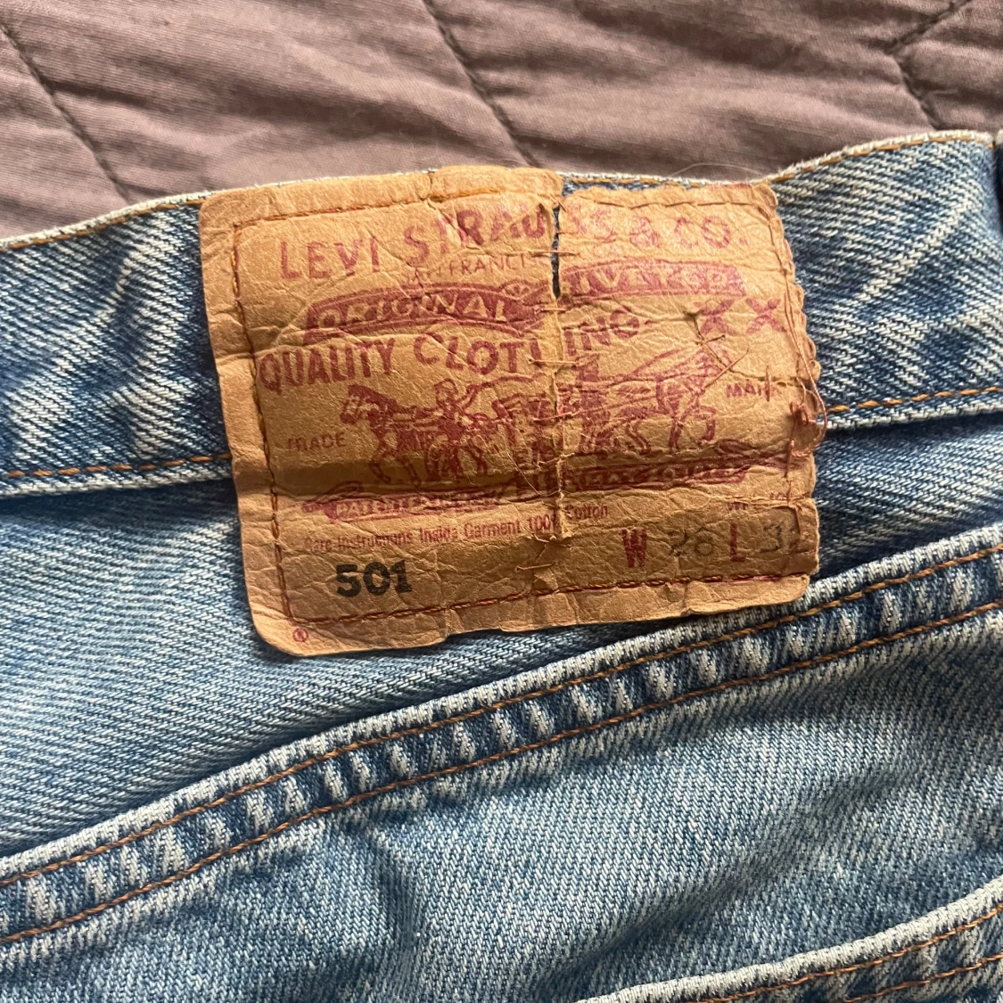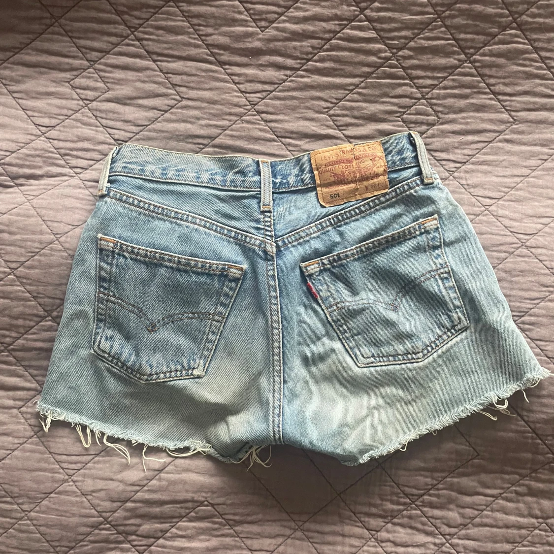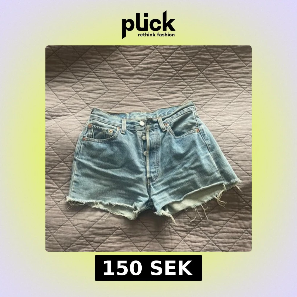 Levisshorts i modellen 501, köpta second hand. Skicket är använt (se sista bilden med lappen som är lite sliten). Sitter väldigt fint på. Storleken är w28 - de kommer att passa bra om du har stl xs-s.