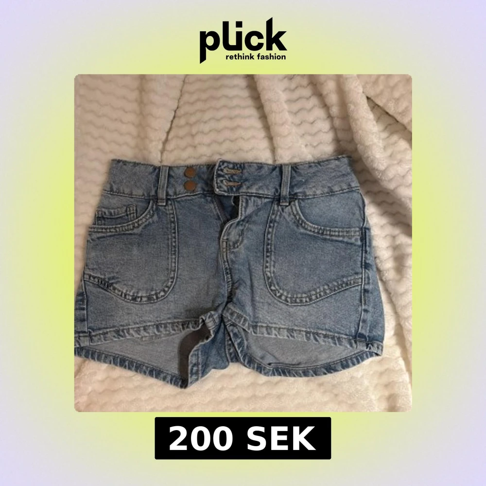 Snygga blå jeansshorts från Lindex med helt okej låg midja och coola broderade detaljer på bakfickorna. Dem är super sköna o sitter perfekt dem är i storlek 152 men de är som Xs
