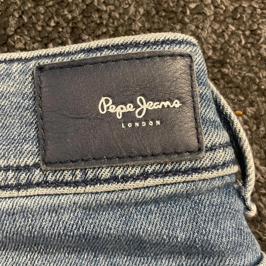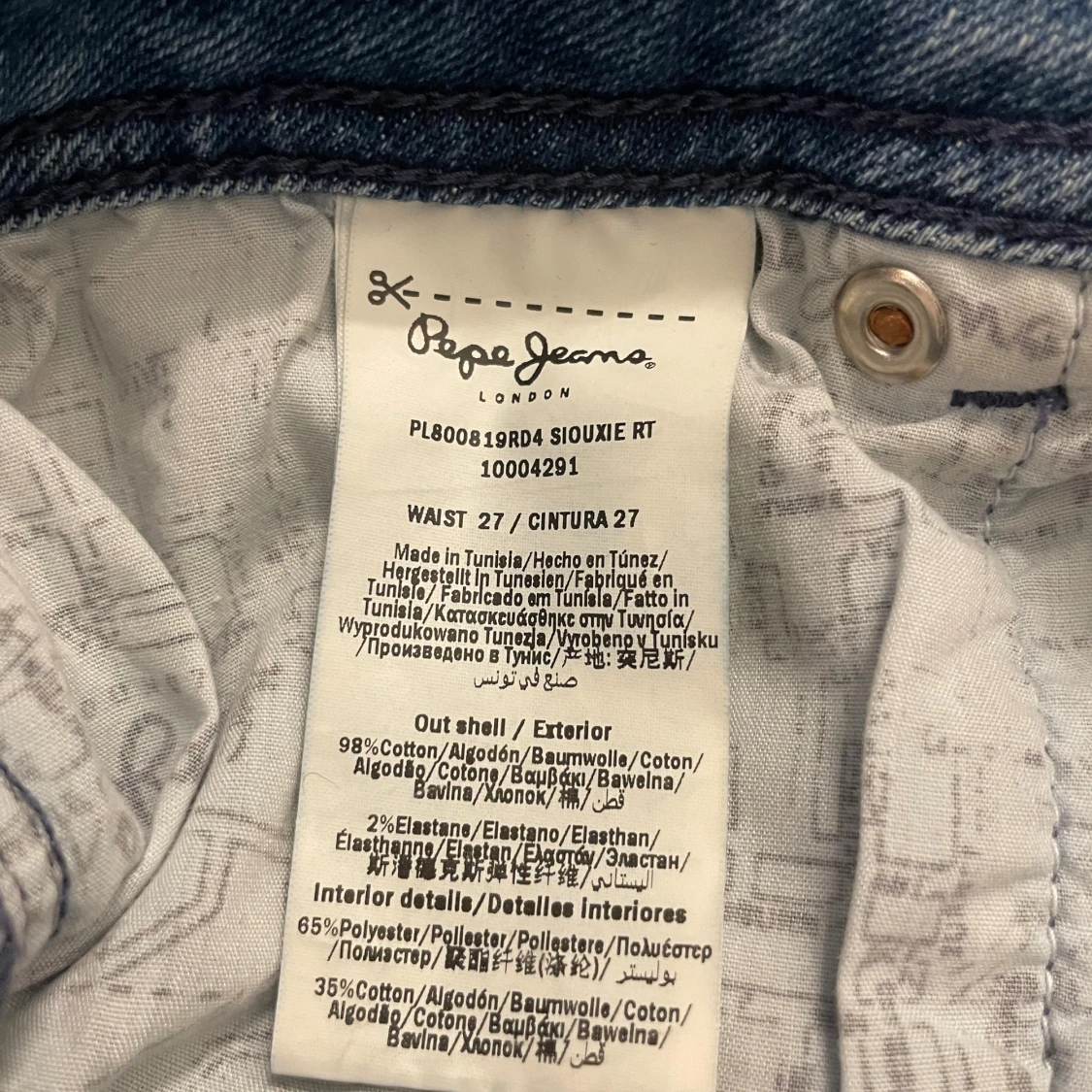 Snygga blå jeansshorts från Pepe Jeans med rå kant och slitningar framtill. Klassisk femficksmodell med knapp och dragkedja. Bakfickorna har coolt broderat vågmönster. Shortsen är gjorda i bomull med lite stretch för skön passform.