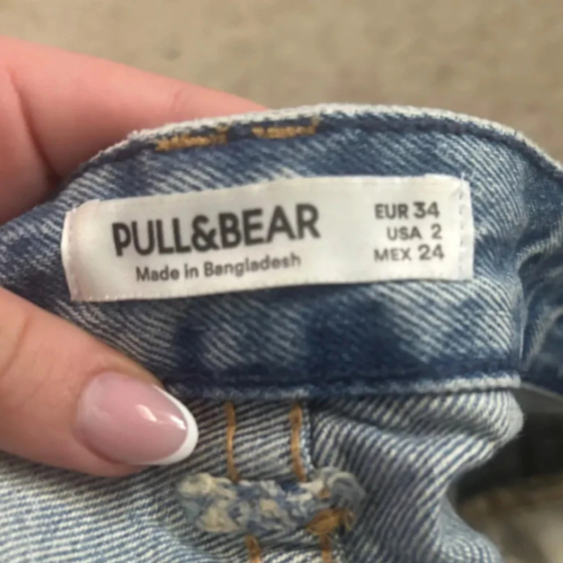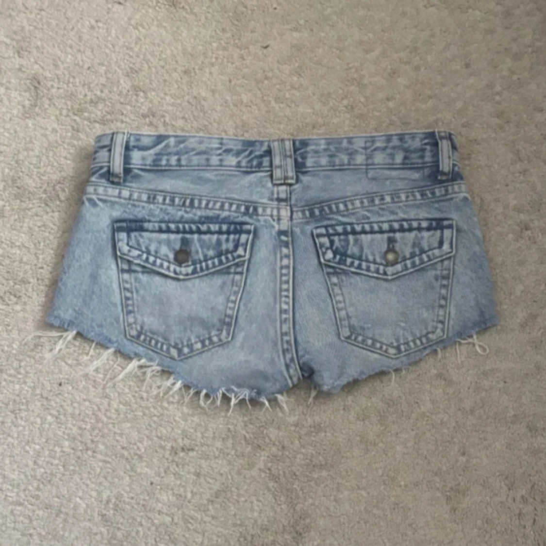 Snygga lågmidjade jeansshorts från Pull&Bear i storlek 34. De har låg midja, slitna detaljer och fransig kant nertill. Perfekta för sommardagar och festivaler. Oanvända då det tyvärr är för stora, annars hade jag behållt! 🩷