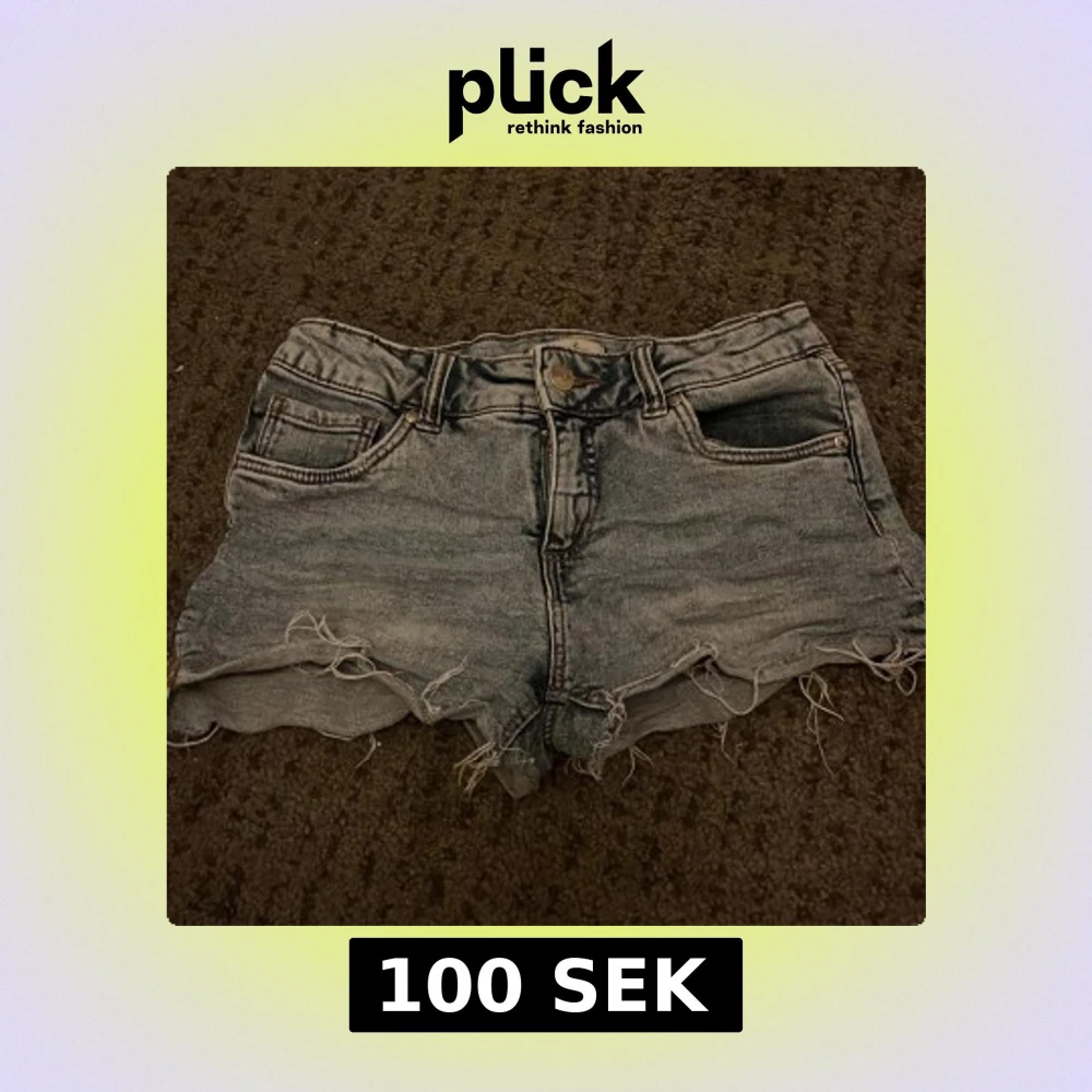Säljer ett par blå jeansshorts med fransiga kanter. De har en klassisk femficksdesign och knappgylf. Perfekta för en avslappnad stil. Säljer för att de har blivit för små❤️❤️
