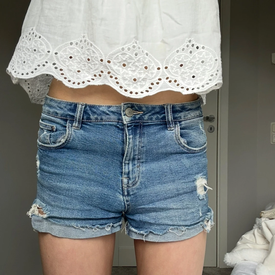 Hej!! Säljer dessa jättefina shorts från Zara i storlek 36 med midjemåttet 36 cm. Jag har de lite nere på höfterna för en avslappnad och baggy look. Tveka inte på att skriva vid frågor🤗