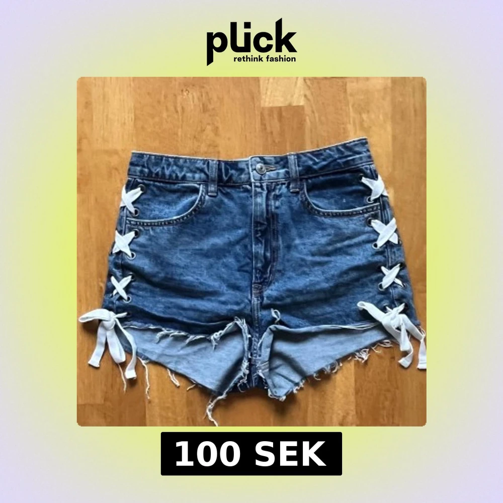Snygga blå jeansshorts med cool snörning på sidorna och råa kanter. Perfekta för en avslappnad stil med en twist. De har en klassisk femficksdesign och knappgylf.