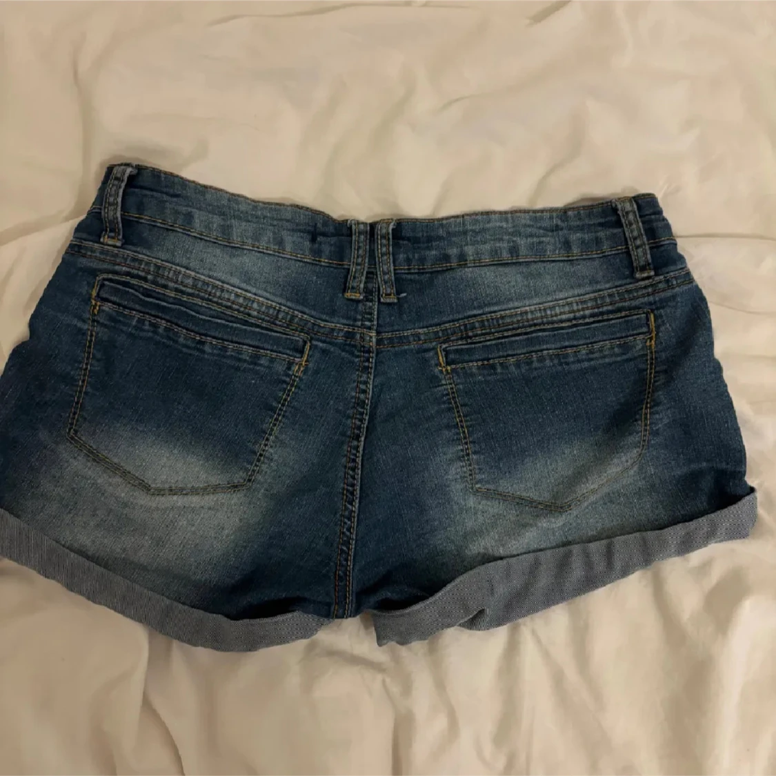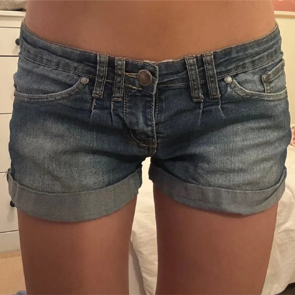 Snygga blå jeansshorts från One Love Denim med upprullade ben och klassisk femficksdesign. Shortsen har låg midja och stängs med knapp och dragkedja. Perfekta för varma dagar och enkel att matcha med olika toppar.
