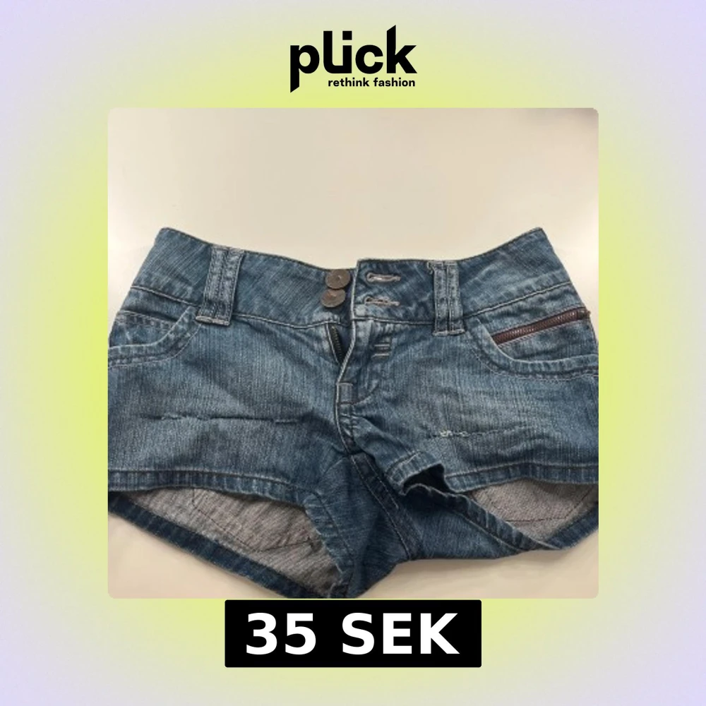 Snygga blå jeansshorts med låg midja i storleken XXS/32. Framtill finns dubbla knappar och dragkedja.