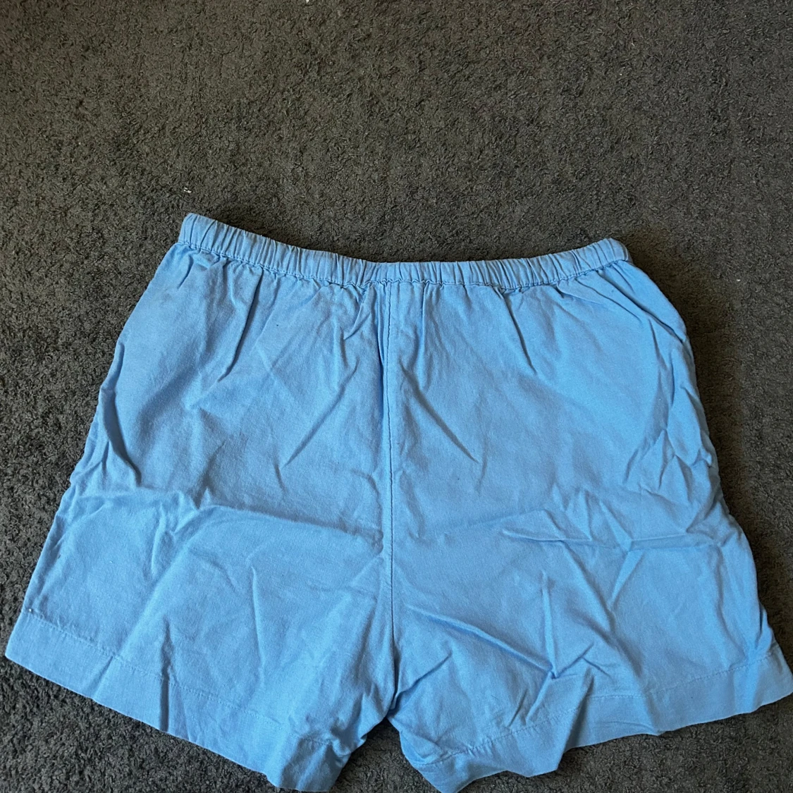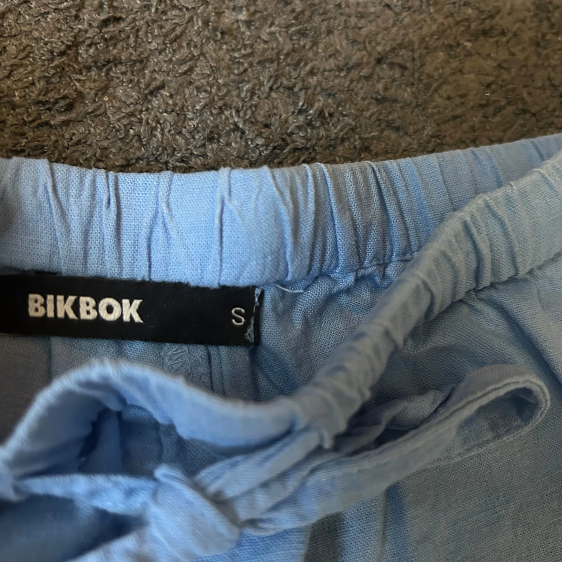 Lätta och sköna ljusblå linneshorts från BikBok. De har elastisk midja med snörning och avslappnad passform. Perfekta för varma dagar när du vill ha något bekvämt och enkelt. Använda en gång.🌸