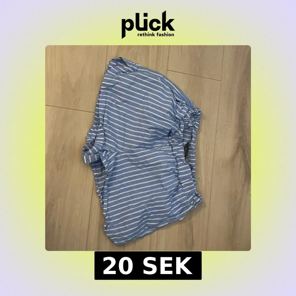 Säljer ett par blå- och vitrandiga shorts med knytning i midjan. Perfekta för en avslappnad sommarlook. De har en loose passform och är tillverkade i ett lätt och bekvämt material.
